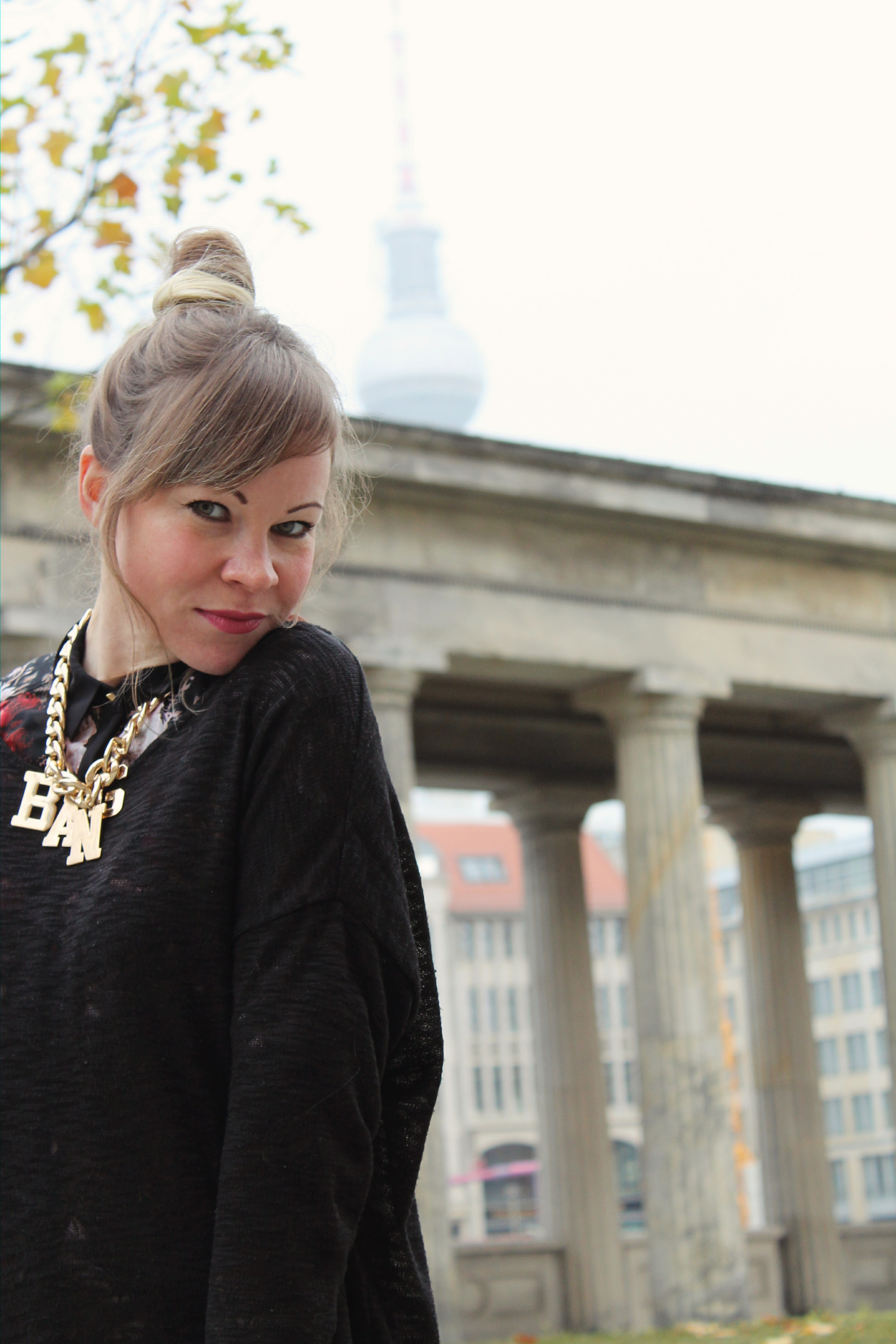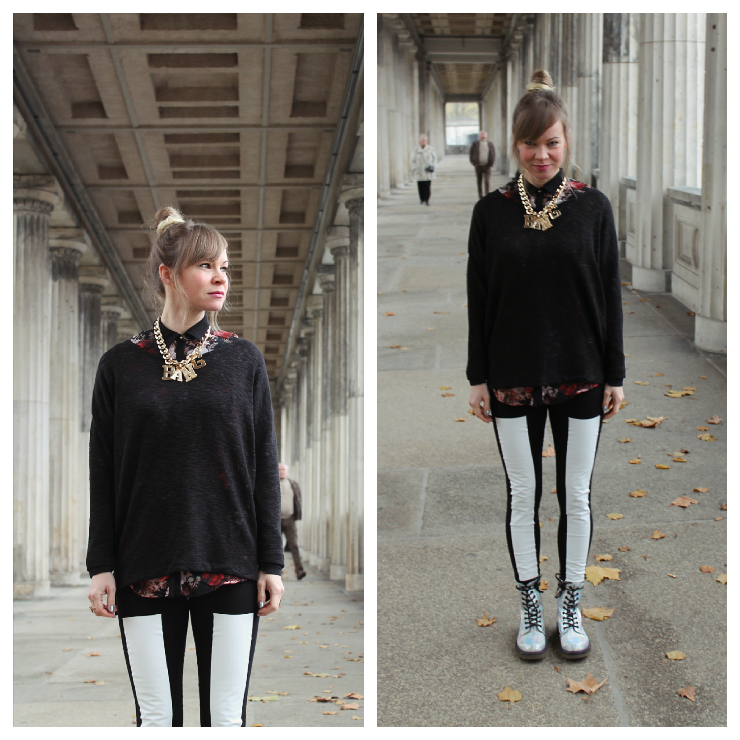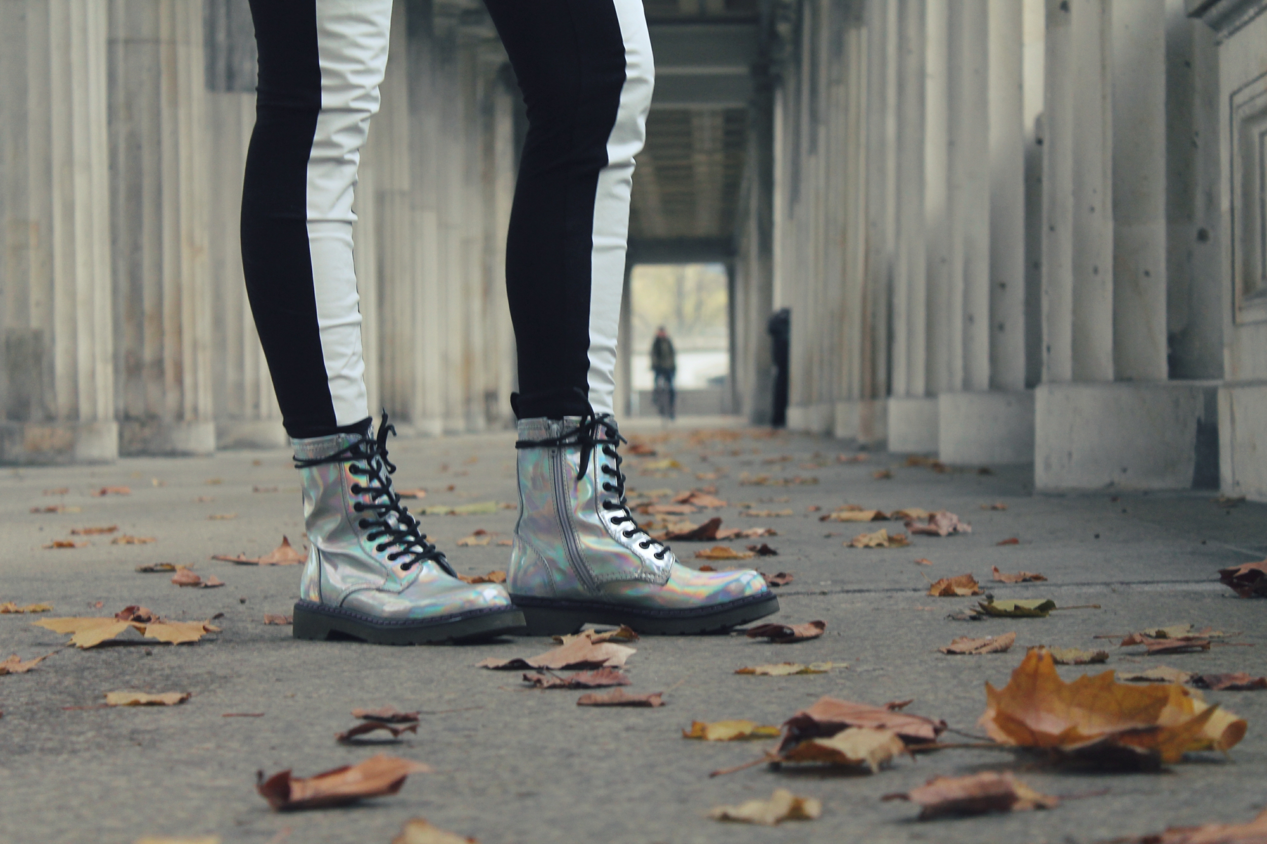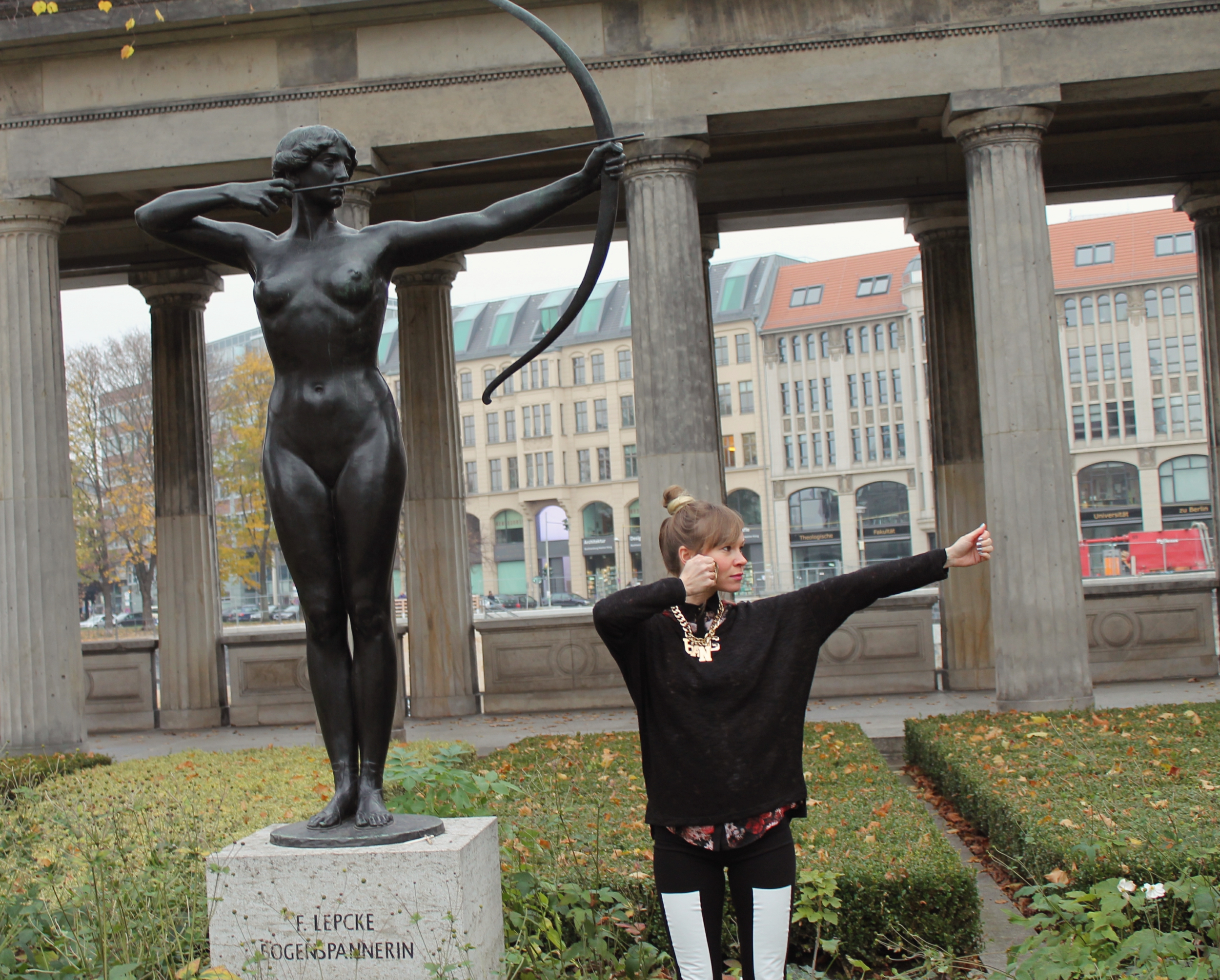 Last sunday I went through the Altes Museum- Am Lustgarten. A very beautiful place. An accordion player was playing some music and I felt like in Paris at Montmartre. I wore a monki leggins and my hologram shoes. They shine like diamonds in the sun but unfortunately there was no sunday sun.