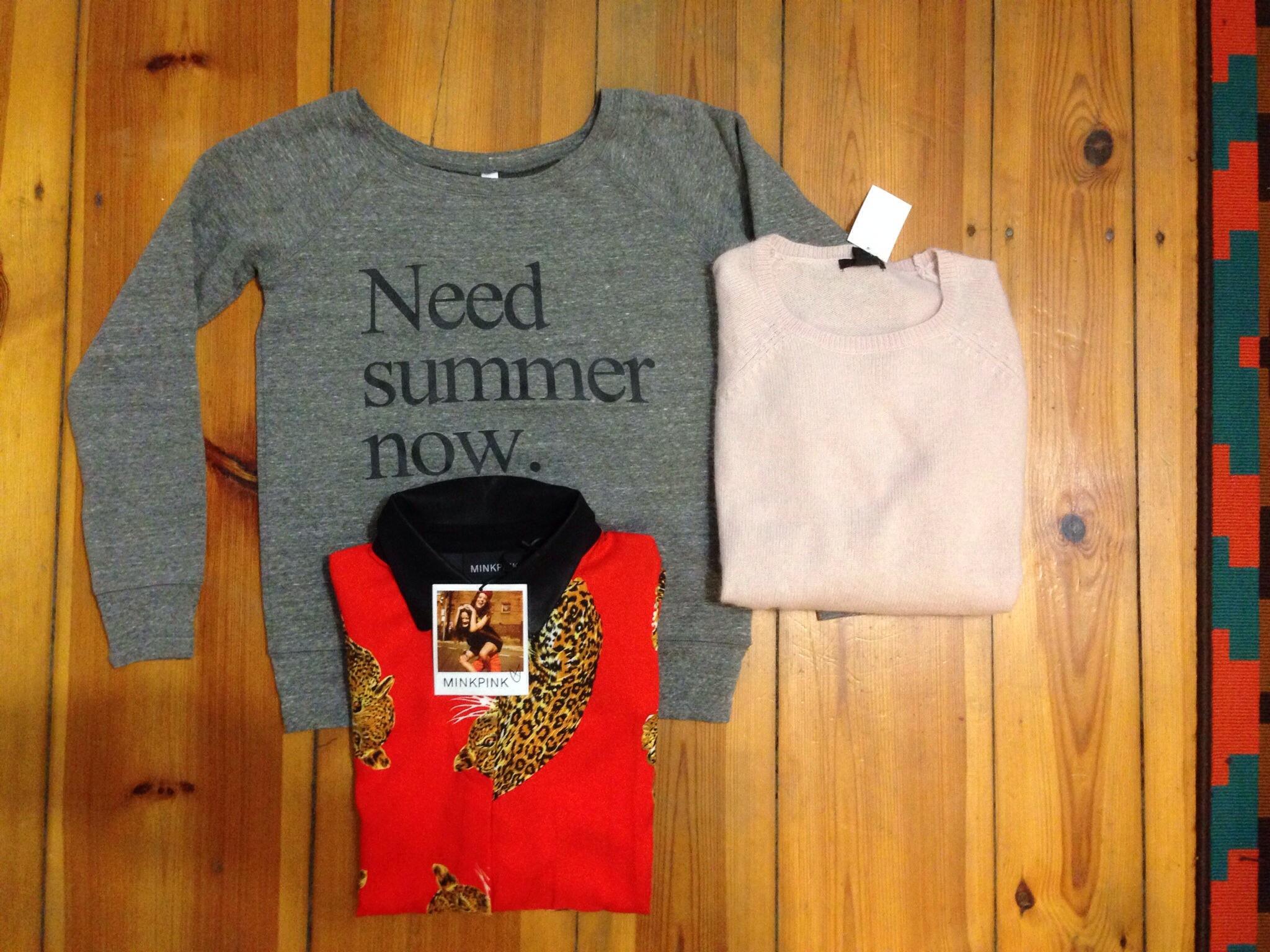 Neuanschaffungen: Ein kuschliger Sweater von ‚PrettySucks‘, ein Pullover im Romantiklook von H&M und ein besonderes Highlight- die ‚Minkpink‘ Bluse mit Kunstlederapplikationen in einem wunderschönen rot.