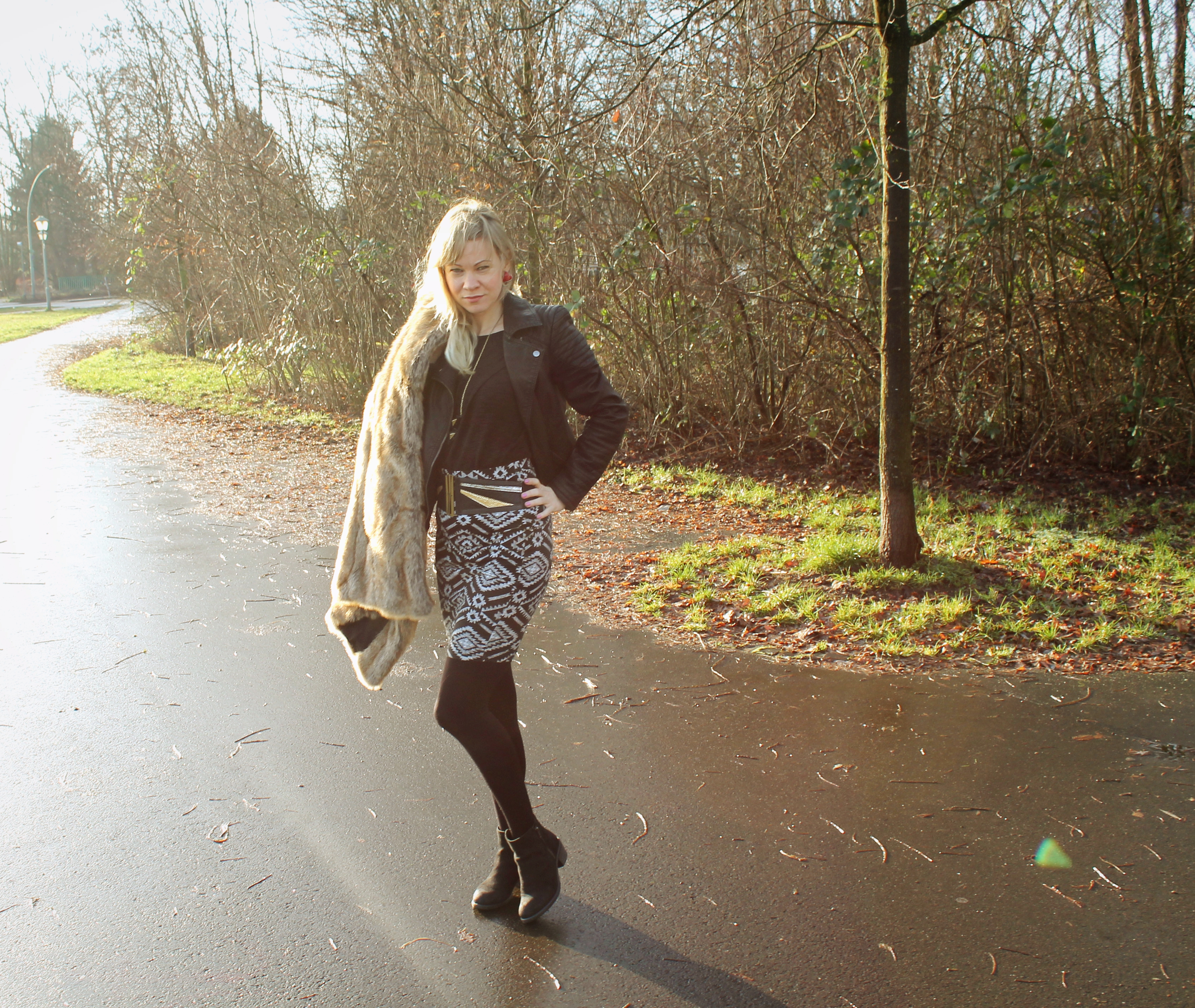 Obwohl es immer noch viel zu warm ist für die Jahreszeit, ist mir mal wieder meine Kunstfellweste von ‚Zara‘ im Kleiderschrank begegnet. Ich fand die Kombination ganz gut, meine Kunstlederjacke darunter zu tragen. ‚New in‘ ist der Rock von ‚Forever21‘. Ich habe ihn im Flagshipstore in der Tauentzienstraße/ Berlin gekauft. Er ist aber auch online in 2 Farben erhältlich. Ich hoffe Euch gefällt mein Outfit.