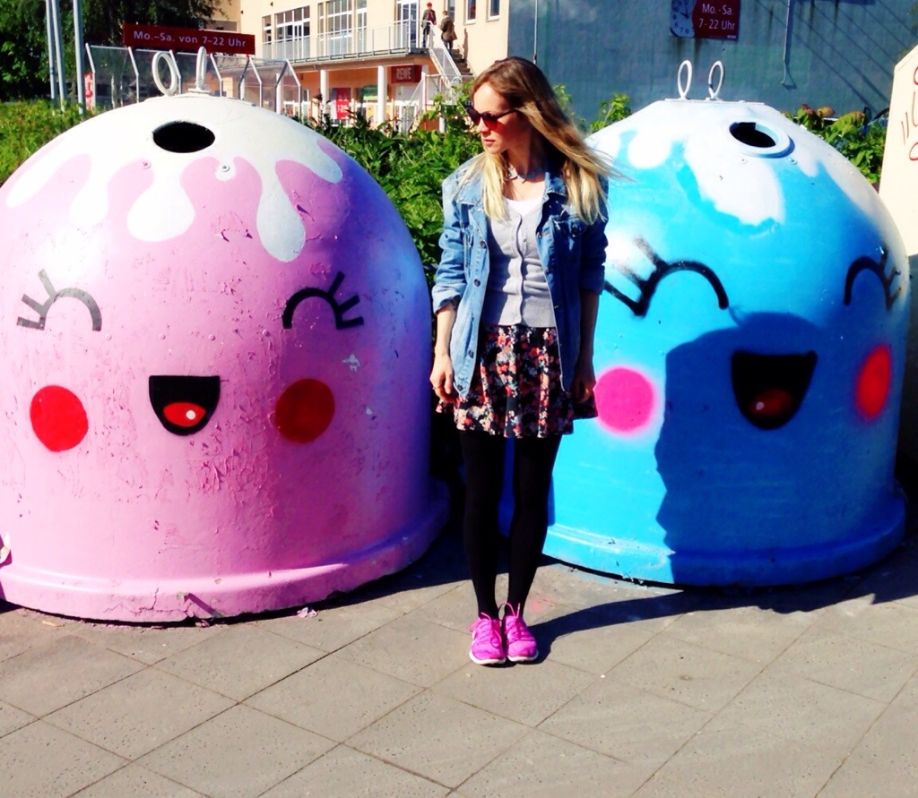 Diese 2 fröhlichen und frisch bemalten Glascontainer habe ich in Berlin-Friedrichshain in der Revaler Straße entdeckt. Ich war sehr froh sie zu treffen :-).