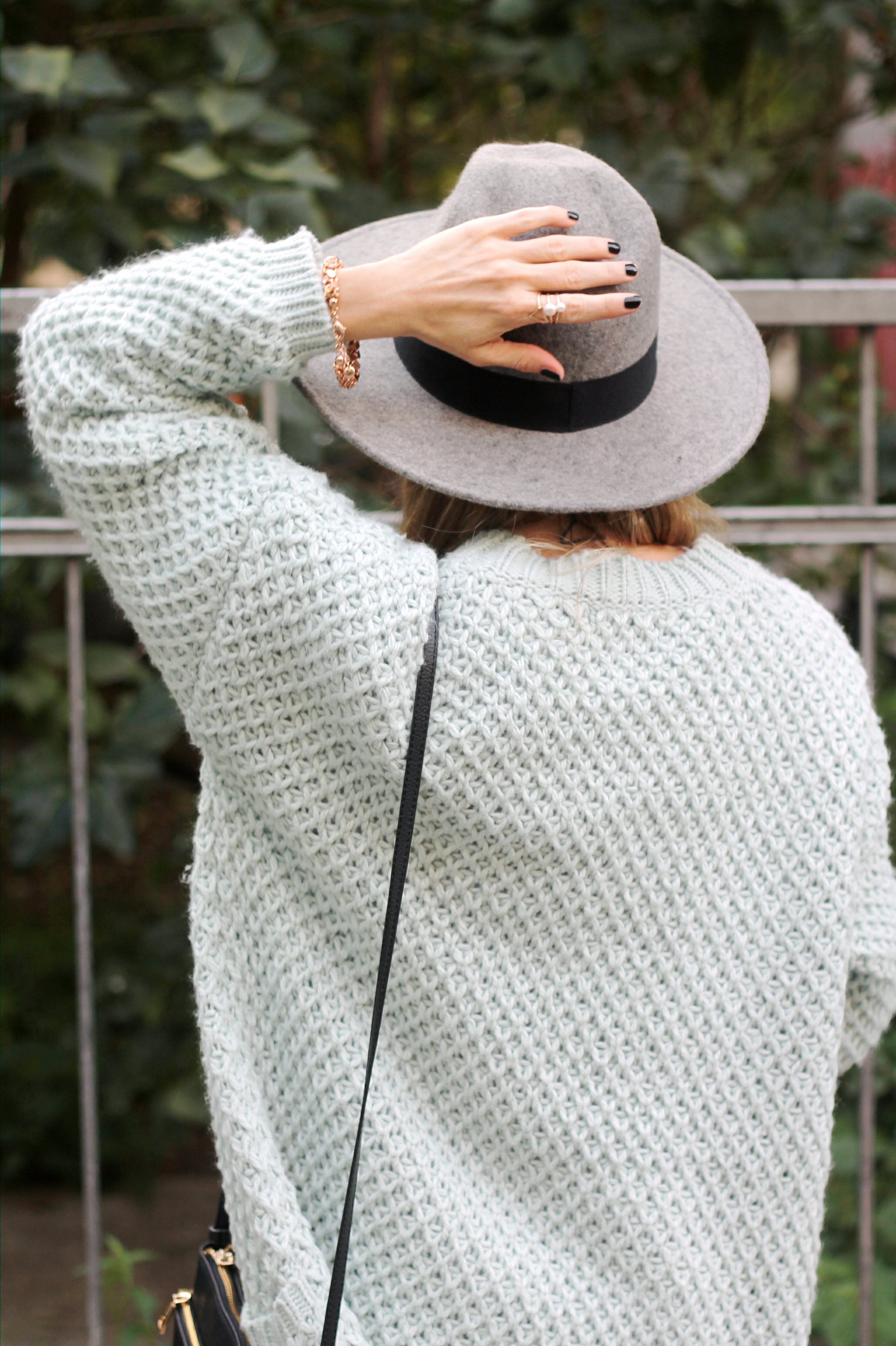 Cosy and comfy, this is how this outfit feels like. Especially I am happy about the hat. It was love at first sight. As a big fan of any headgear I was searching for a gray hat. Because of the felt material the hat keeps warm and on ‚bad hair days‘ it’s the perfect addition to any outfit. I hope you like this outfit! For all details scroll down. XX Ina