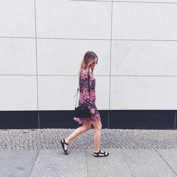Comfy outfit during Fashion Week day 3. Wearing ‚TEVA‘ sandals and ‚First and I‘ dress.
