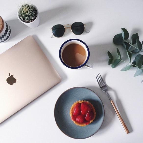 Strawberry cake made by my mum, fresh coffee and some Sunday work.