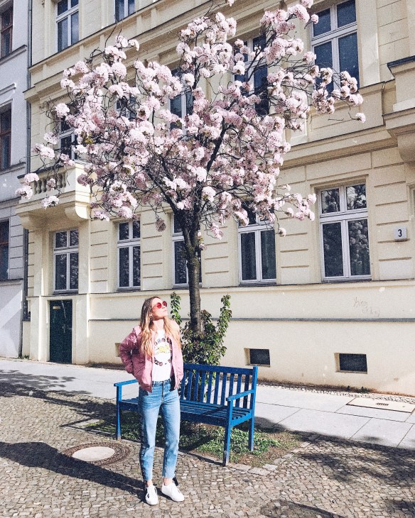 Soak up the sun under the cherry blossom tree.