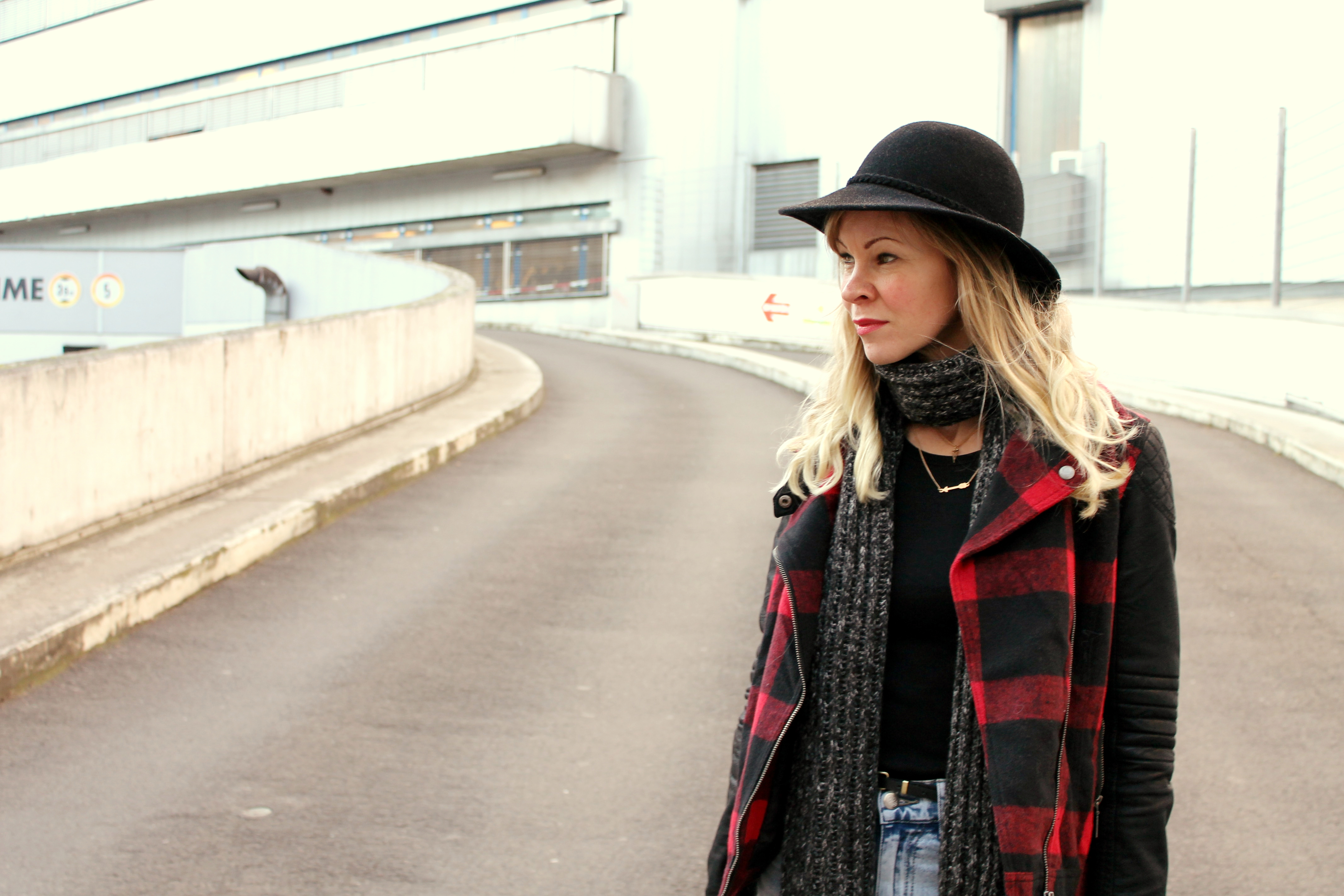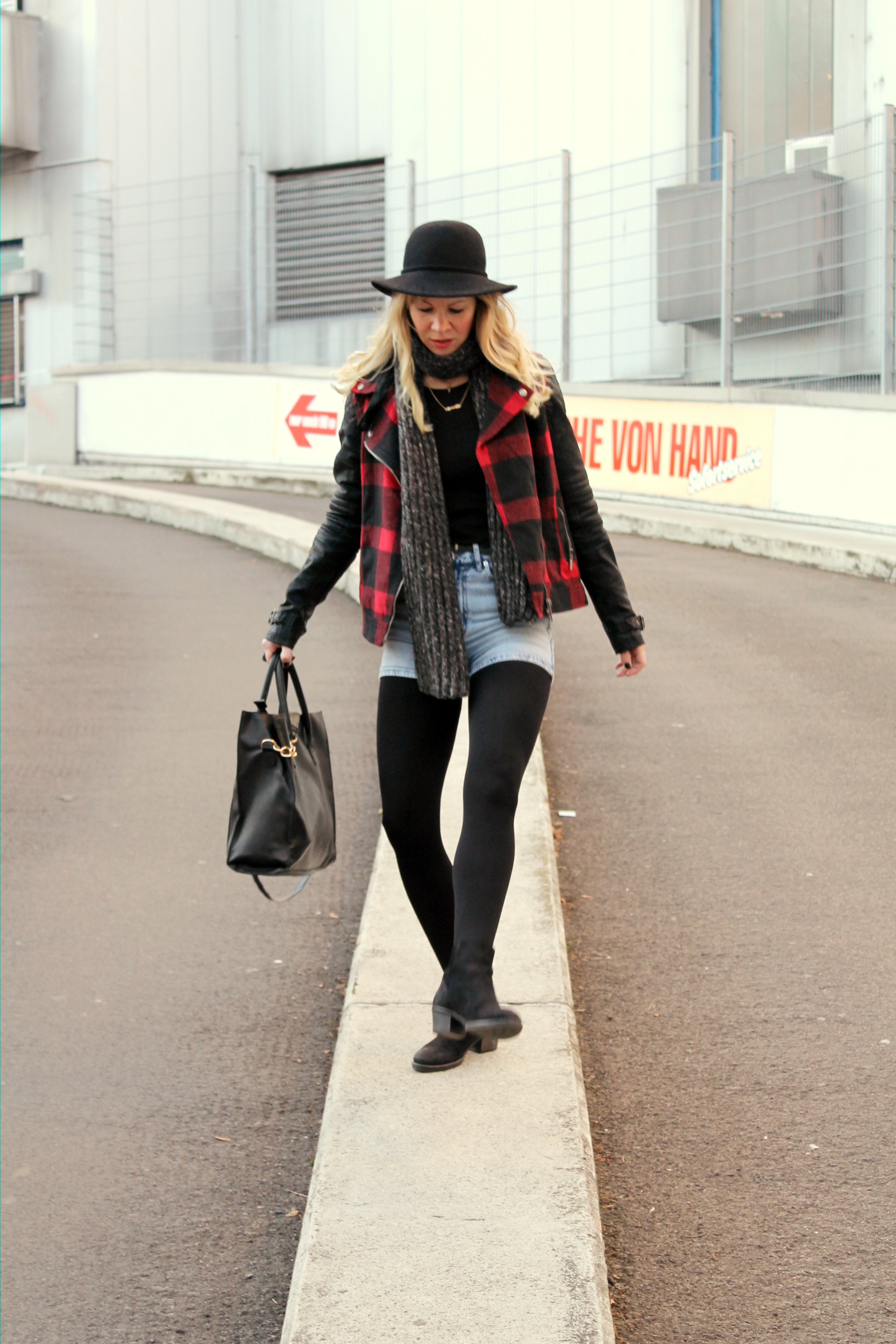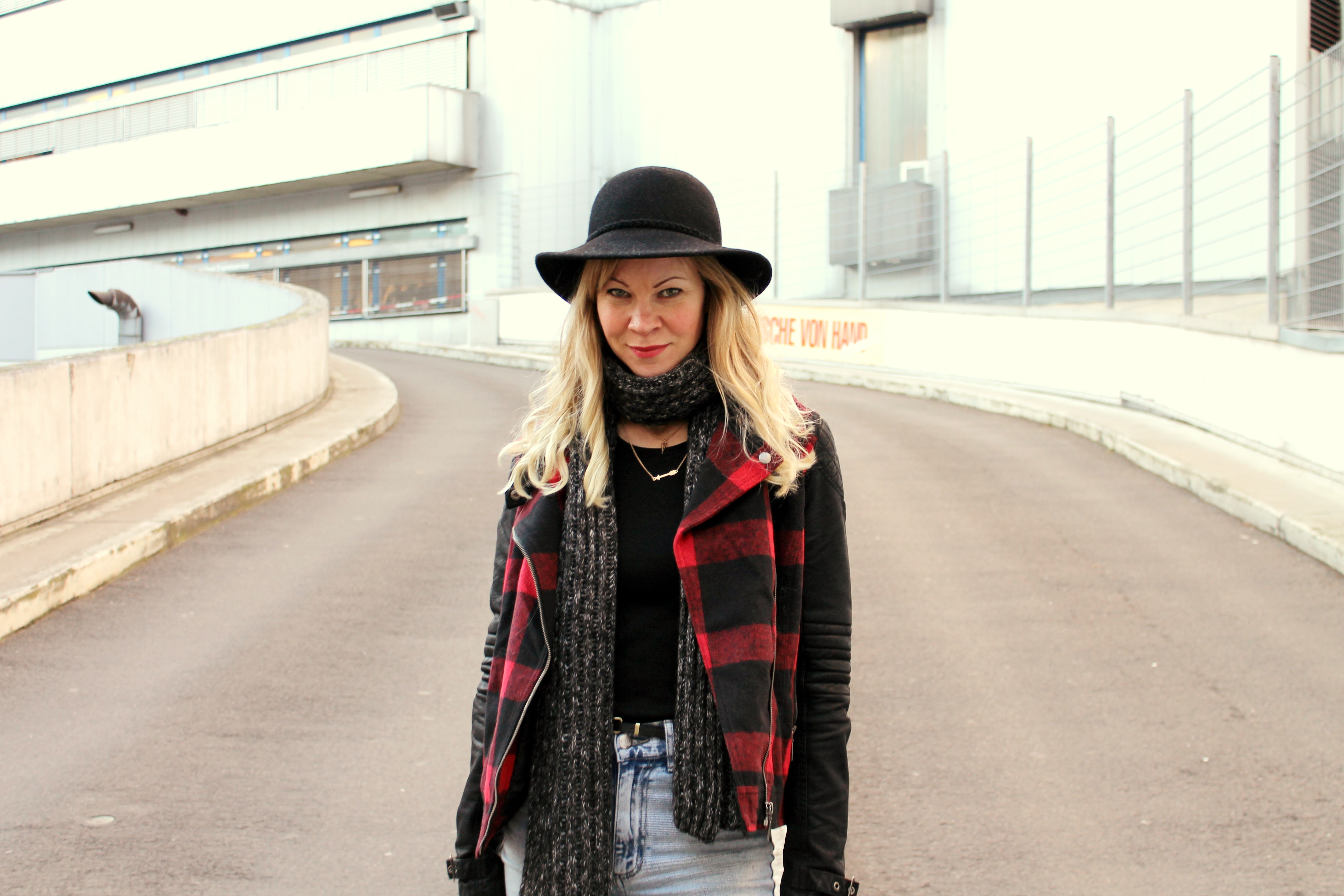Just in time for outfit shooting yesterday it started to rain in Berlin Kreuzberg. In the picture below you can see all the little raindrops on my hat. But there were only a few drops, so it feels like a spring rain because of the mild temperatures already. I wear my new skirt from one of my favorite shops ‚ Broke + Schön‚ (currently they don’t have an online shop). I’ve done some more posts with outfits from this wonderful shop. There are 2 shops in Berlin, one in Mitte and one in Friedrichshain. On weekends I often walk through Friedrichshain, most of the time on Sundays to walk to the flea market at ‚Boxhagener Platz‘. Basically then I press my nose to the ‚Broke + Schön‘ shop window to discover the latest pieces. So one Sunday I discovered this skirt hanging in the shop window. It was a fascinating sight like a thunderstruck. I could hardly sleep in the night from Sunday to Monday until I was finally able to buy him and could see him as my property. That was quite convenient because my stage outfit for the concert with my band last Saturday was finished. Here you can watch the stage outfit. Matching to this black skirt I like my hat from H & M and my very favorite red blood shoes. They seem a little uncomfortable by their extravagant appearance but because of the plateau sole they aren’t. I wore them even to a band photo shoot here . This shooting is 1,5 years ago you can see it on my completely bleached hair although these shoes have a special place in my shoe collection and occasionally they are used.