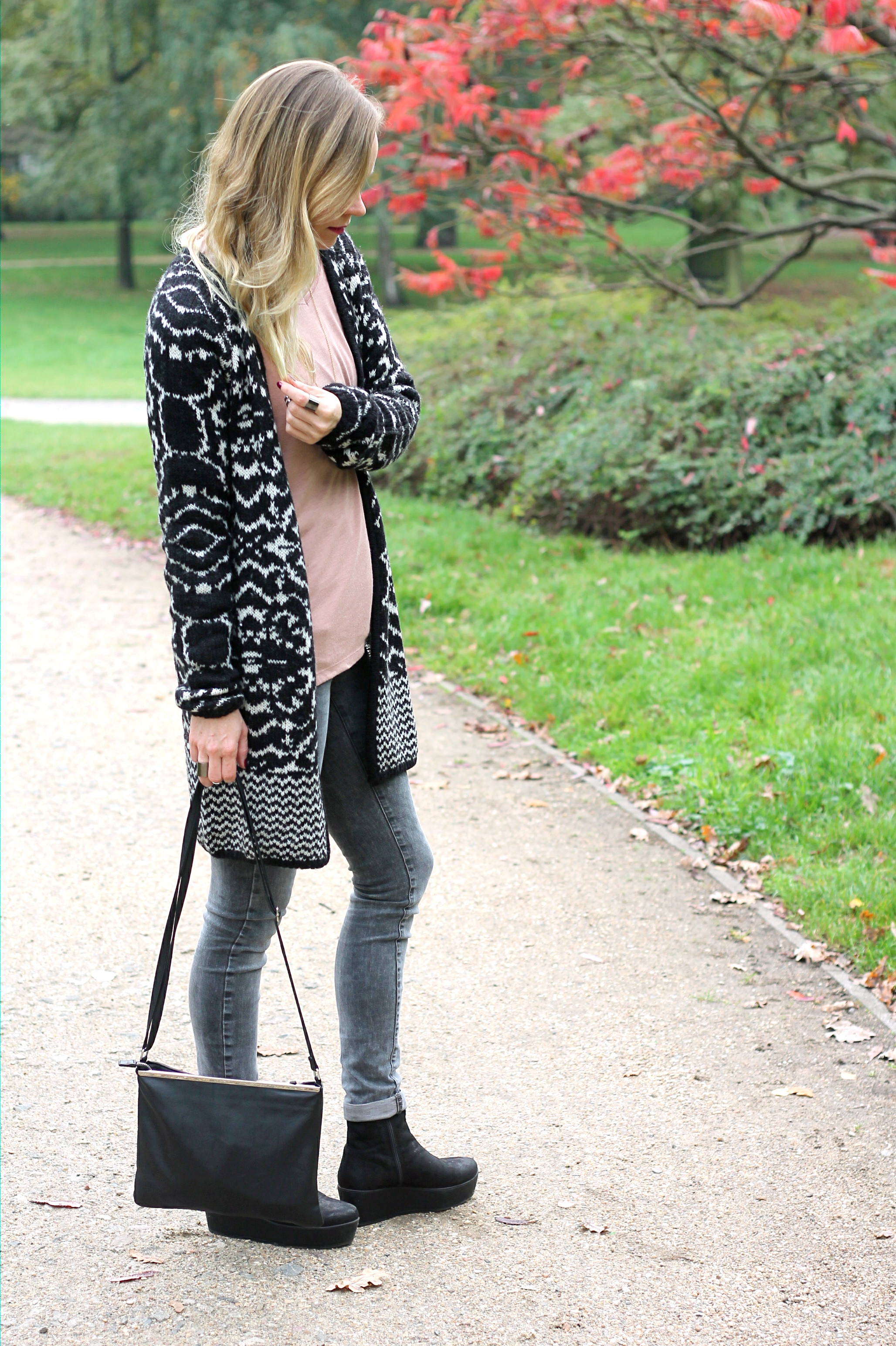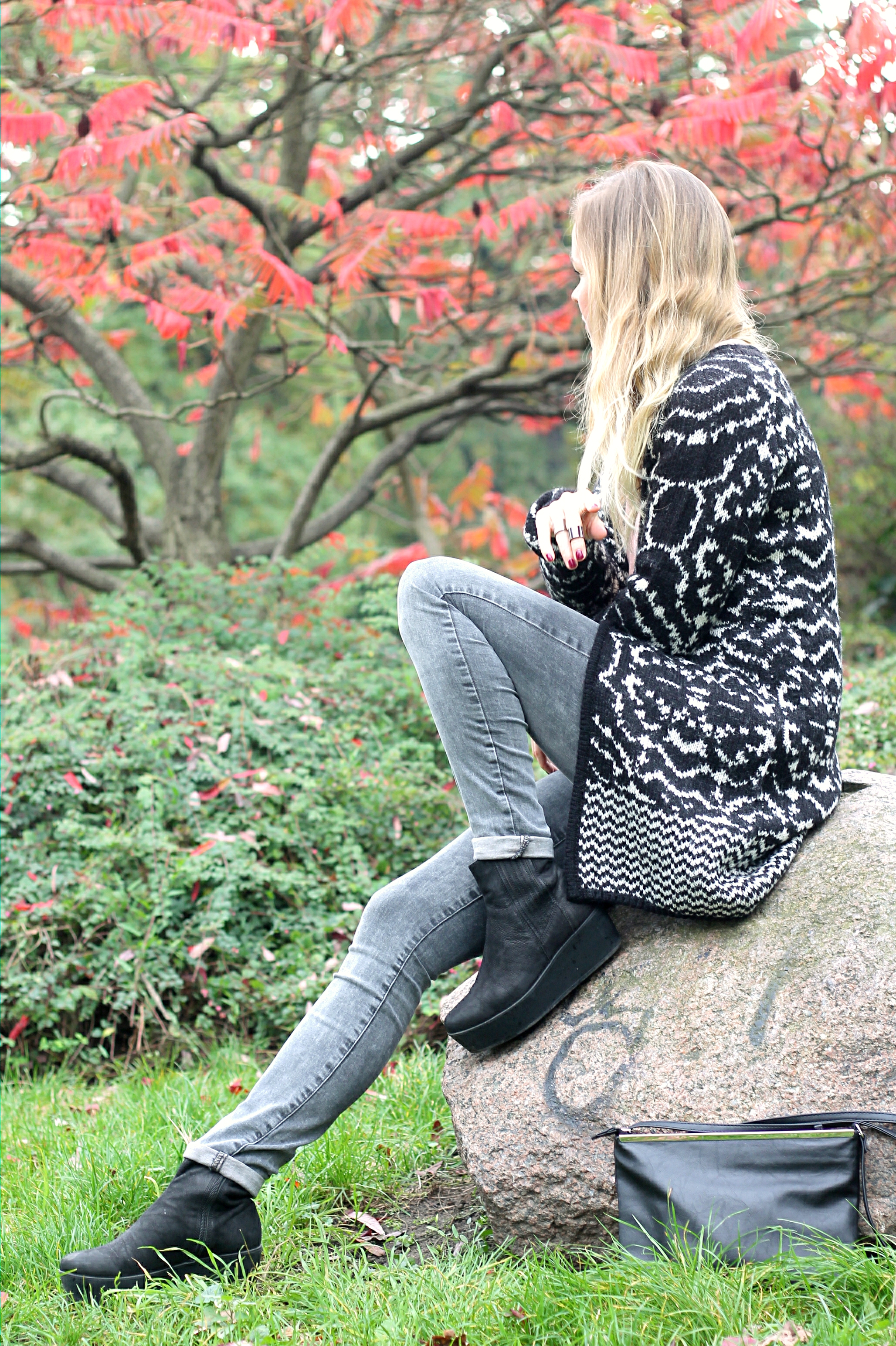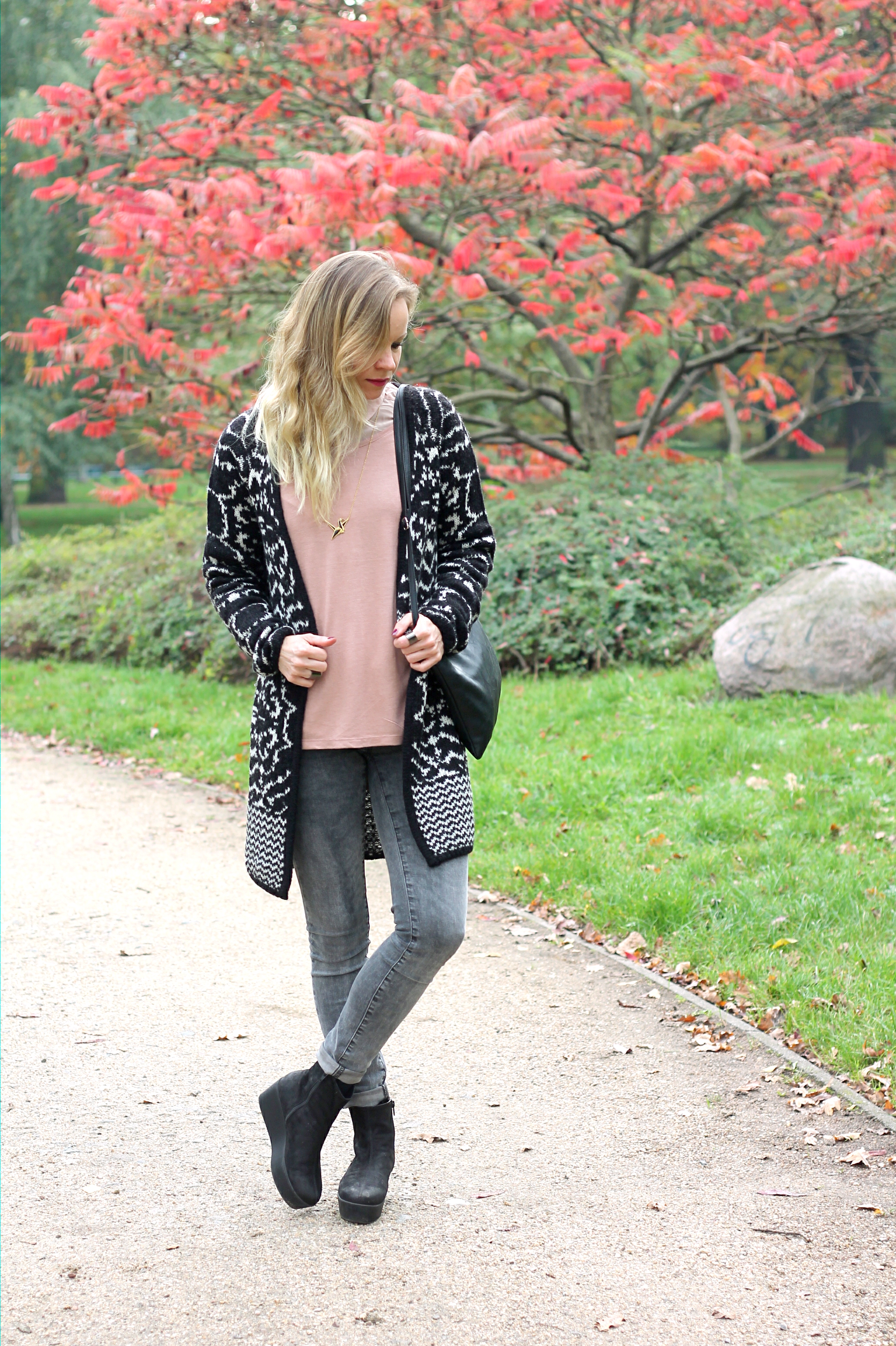 Once again a cardigan plays the main role in this outfit. I like them very much because I think it is one of the cosiest companion for this time of the year. A current second favorite is the combination of ‚blouse under the sweater‘. Everything I bought at ‚New Yorker‘. If you like something from this look you will find some online alternatives after the last outfit photo below. I hope you like this cozy fall outfit. XX Ina