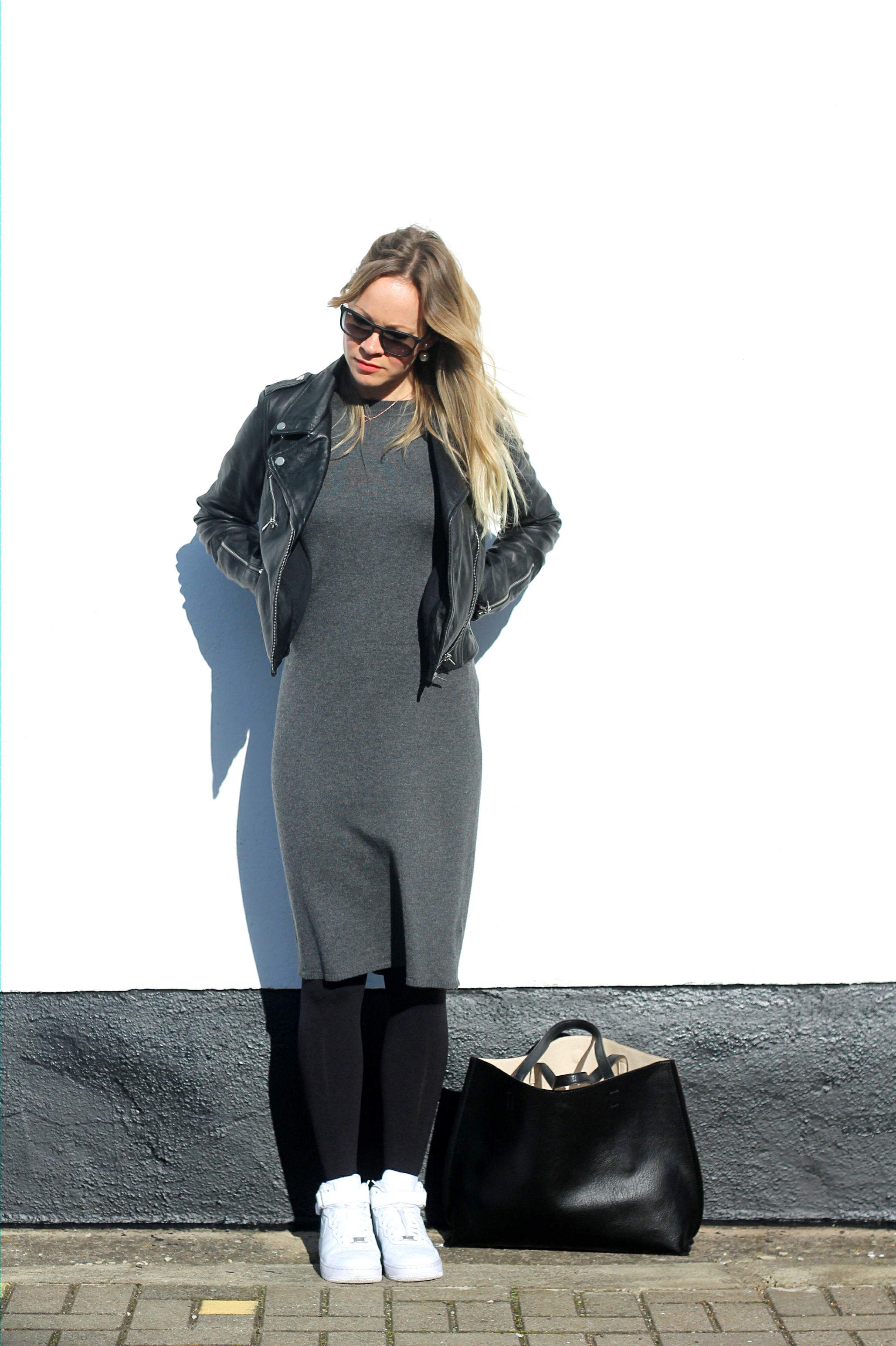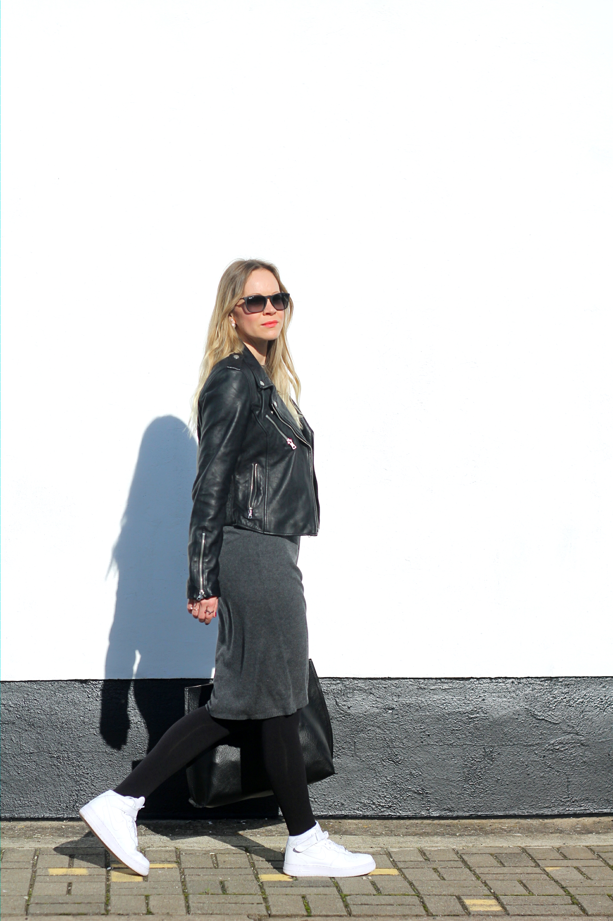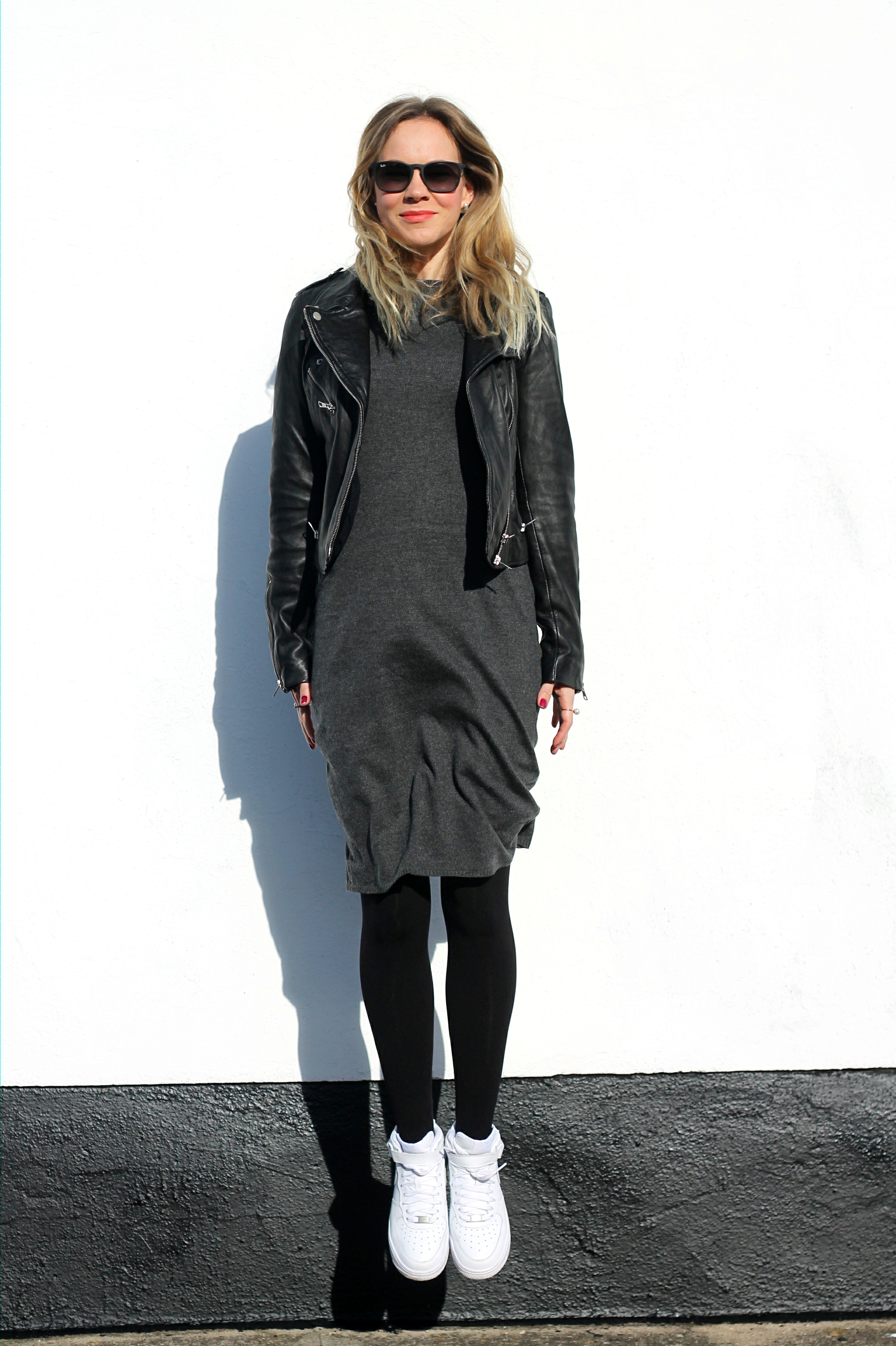 Das erste Wochenende im November ist vorüber und angefühlt hat es sich wohl eher wie eines im Spätsommer: Sonne satt und warme Temperaturen. Mütze und Schal blieben im Schrank und stattdessen konnte ich die geliebte Lederjacke überstreifen. Dazu kombiniert habe ich mal ein etwas längeres Kleid und irgendwie stand mir der Sinn danach das ganze Outfit sportlich elegant aussehen zu lassen. Deshalb kamen meine derzeitigen Sneakerfavoriten ins Spiel. Ich hoffe Euch gefällt diese Outfit-Kombination? xx Ina
