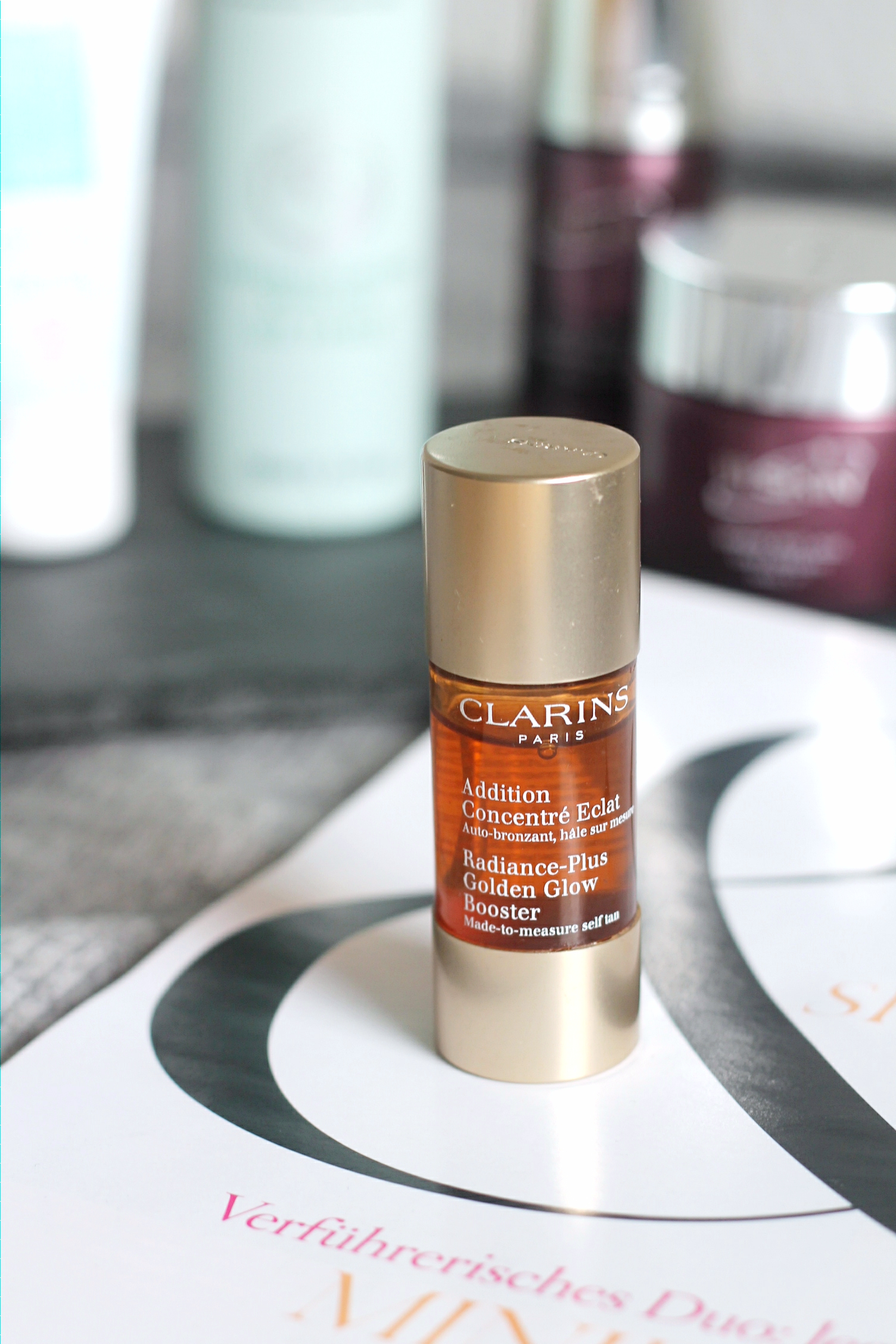 Der Selbstbräuner von Clarins ist seit Ende letzten Jahres auf dem Markt. Ich verwende ihn jetzt seit ca. 4 Monaten je nach Bedarf. Es handelt sich um ein Selbstbräuner-Konzentrat, das ganz mühelos in die Tagescreme gemischt wird. Je nach gewünschter Bräune, ich gebe meistens 3 Tropfen hinzu. Nach ein paar Stunden entwickelt er sich und man hat einen leichten gebräunten und frischen Teint. Die Anwendung ist sehr einfach und es gibt keine Flecken. Nach einigen Stunden kommt ganz leicht der typische Selbstbräunergeruch durch, jedoch sehr dezent.