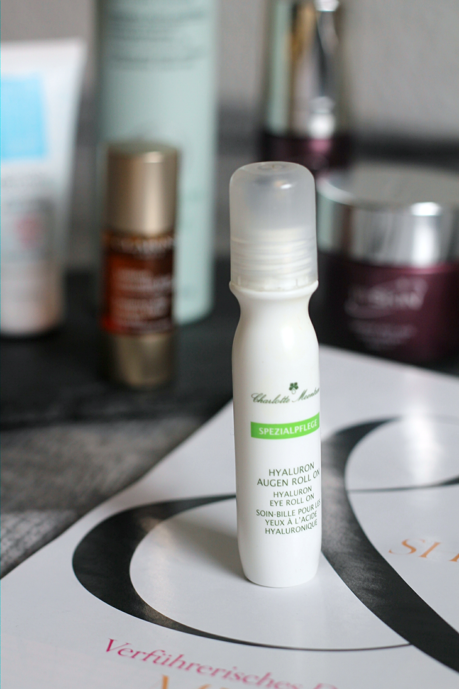 Als krönenden Abschluss verwende ich täglich morgens den Hyaluron Augen Roll-On Pflegestift von Charlotte Meentzen und das schon seit über 3 Jahren. Das Produkt ist sehr ergiebig und hält ewig. Ich trage es direkt unter die Augen auf und klopfe es leicht ein. Es besitzt eine leicht kühlende Wirkung und man fühlt sich gleich wacher und strahlender.