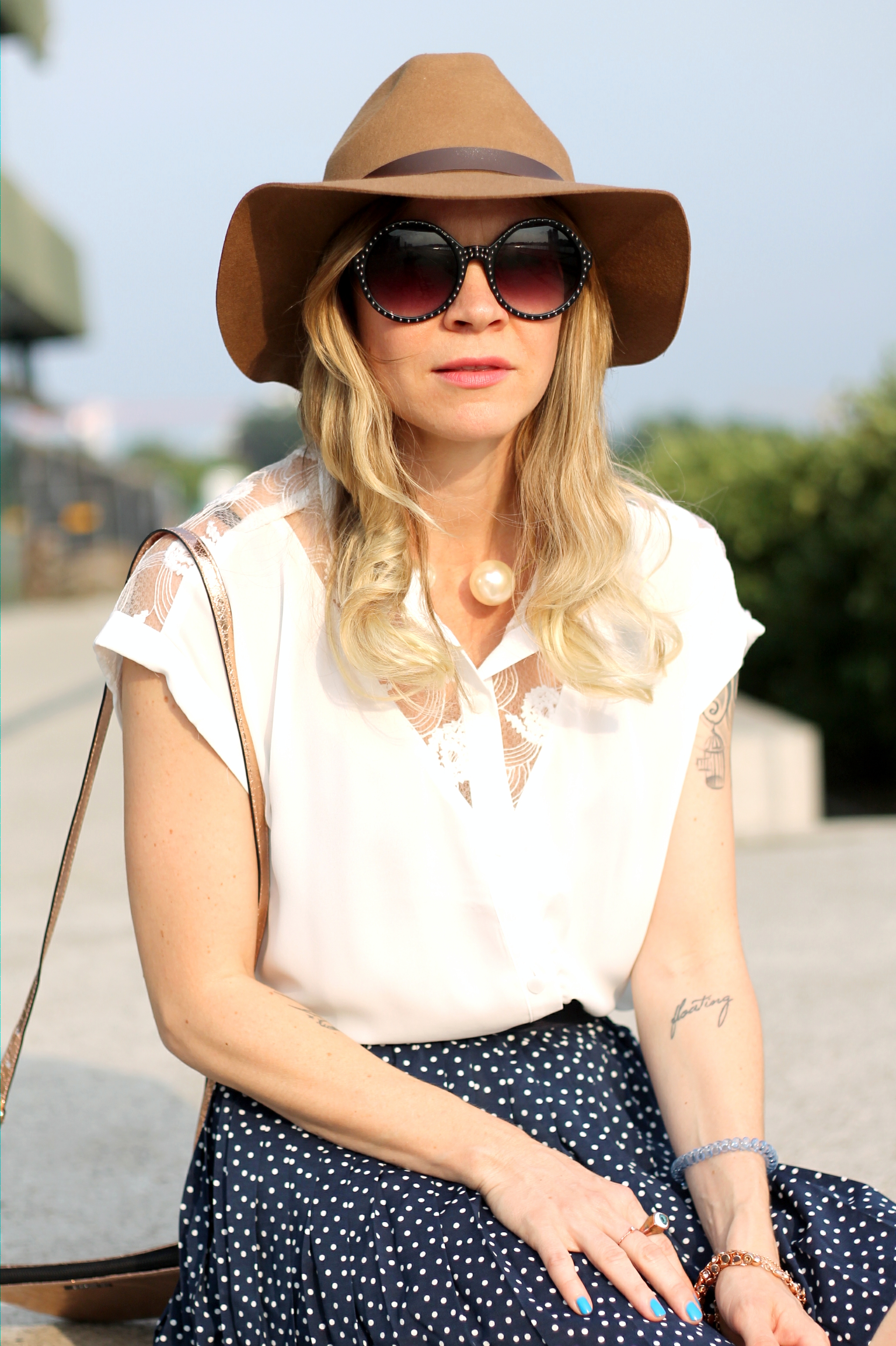 wool hat and dotted skirt