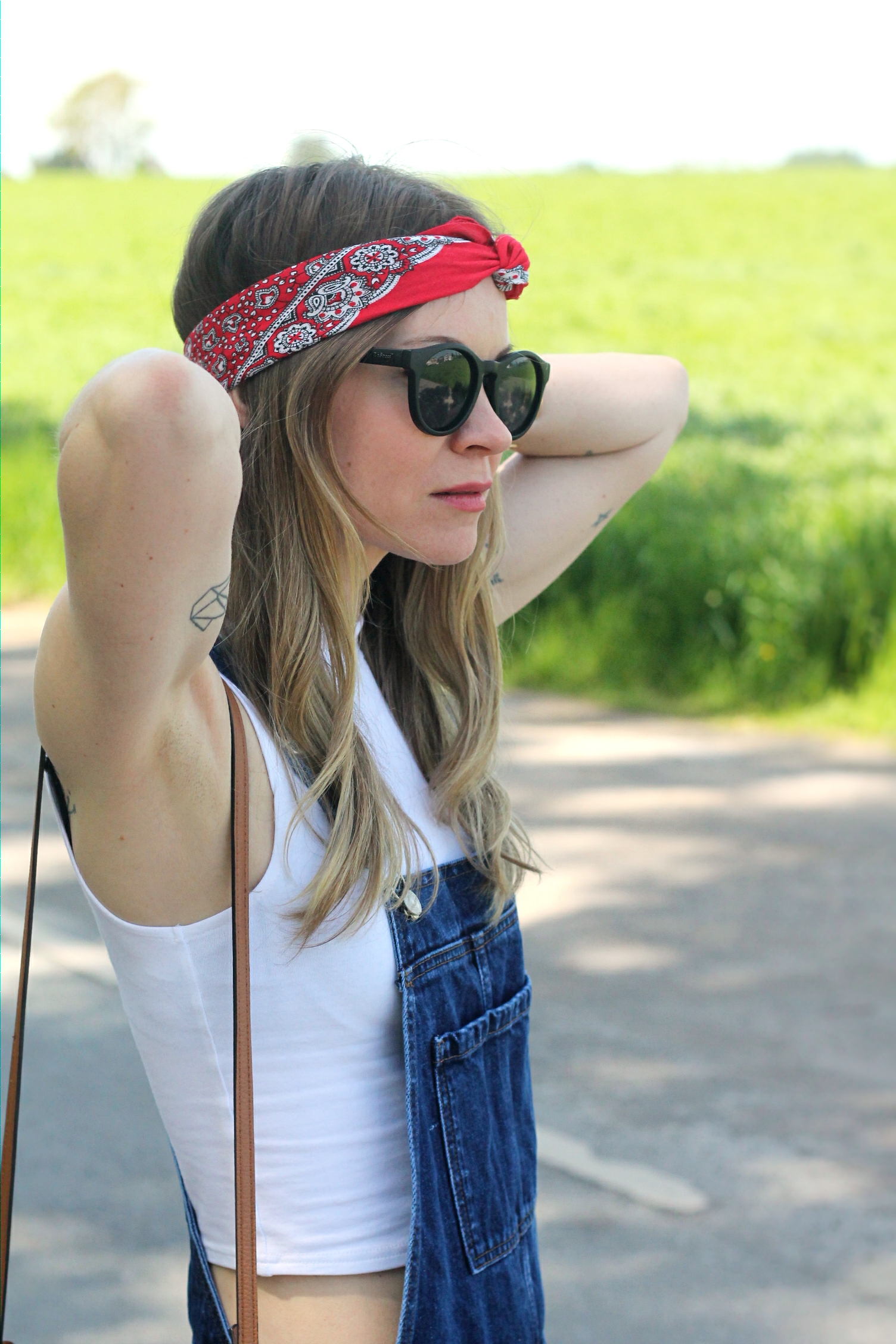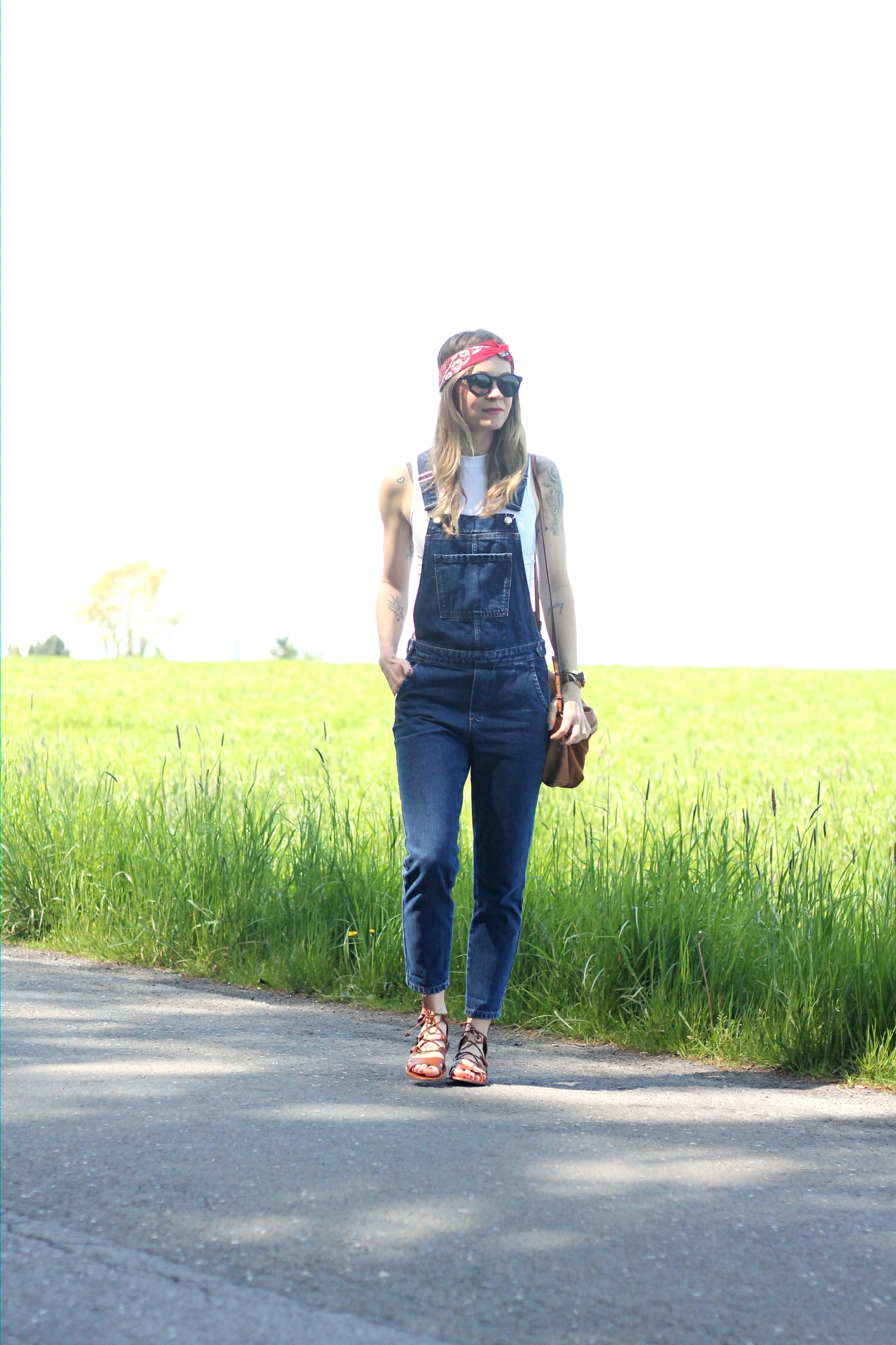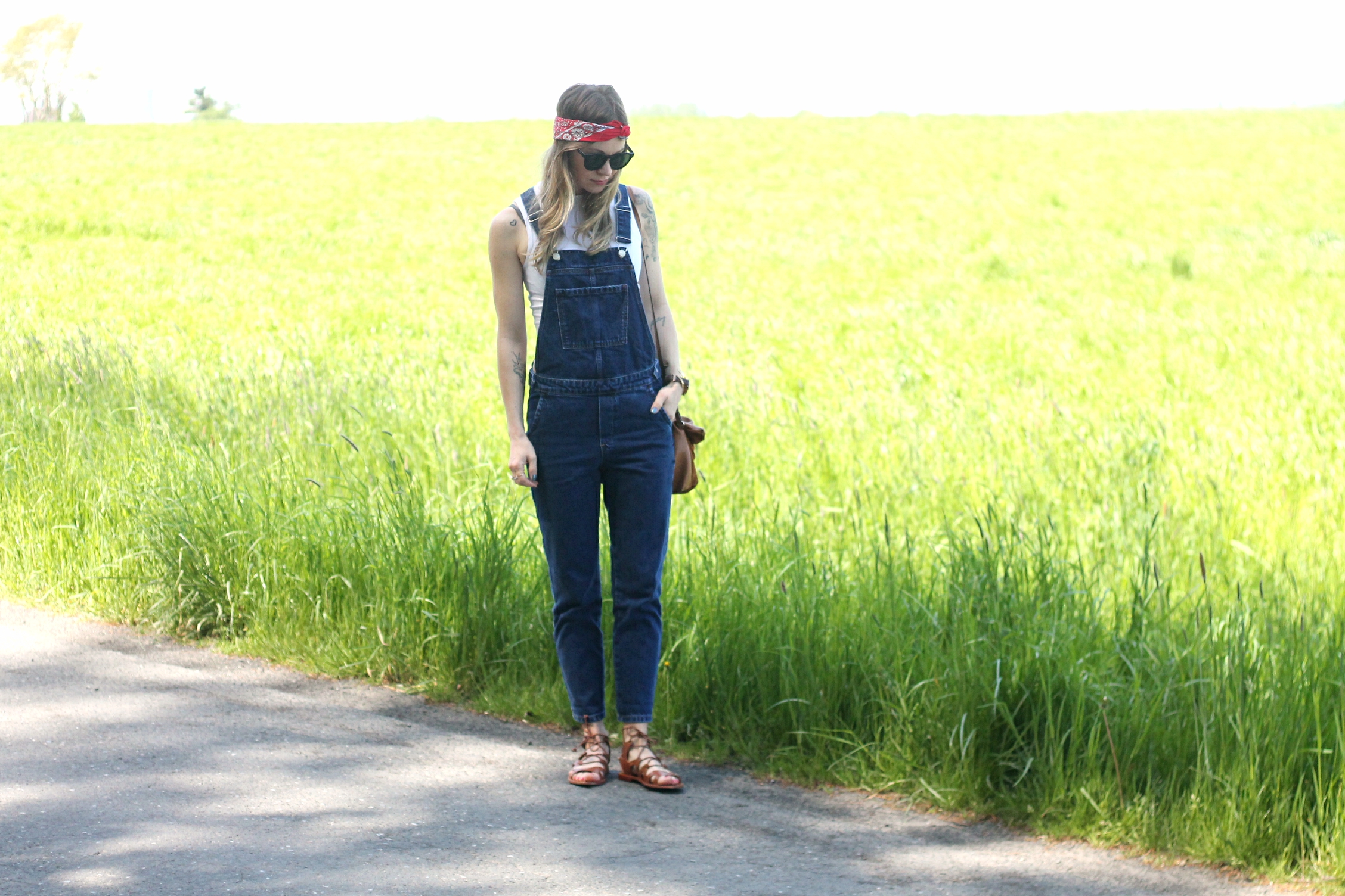 Latzhosen haben ihren Weg zurück in den Kleiderschrank gefunden und so auch in meinen. Ich trage ein eng geschnittenes bauchfreies Top zu meiner Denim-Overall. Dazu bequeme Römersandalen. Sehr gut würden aber auch Brogues, Plateau-Turnschuhe oder High Heels dazu passen. Zusammen mit ein paar auffälligen Accessoires ist der Look perfekt für den Sommer. Ich hoffe Euch gefällt’s. XX Ina