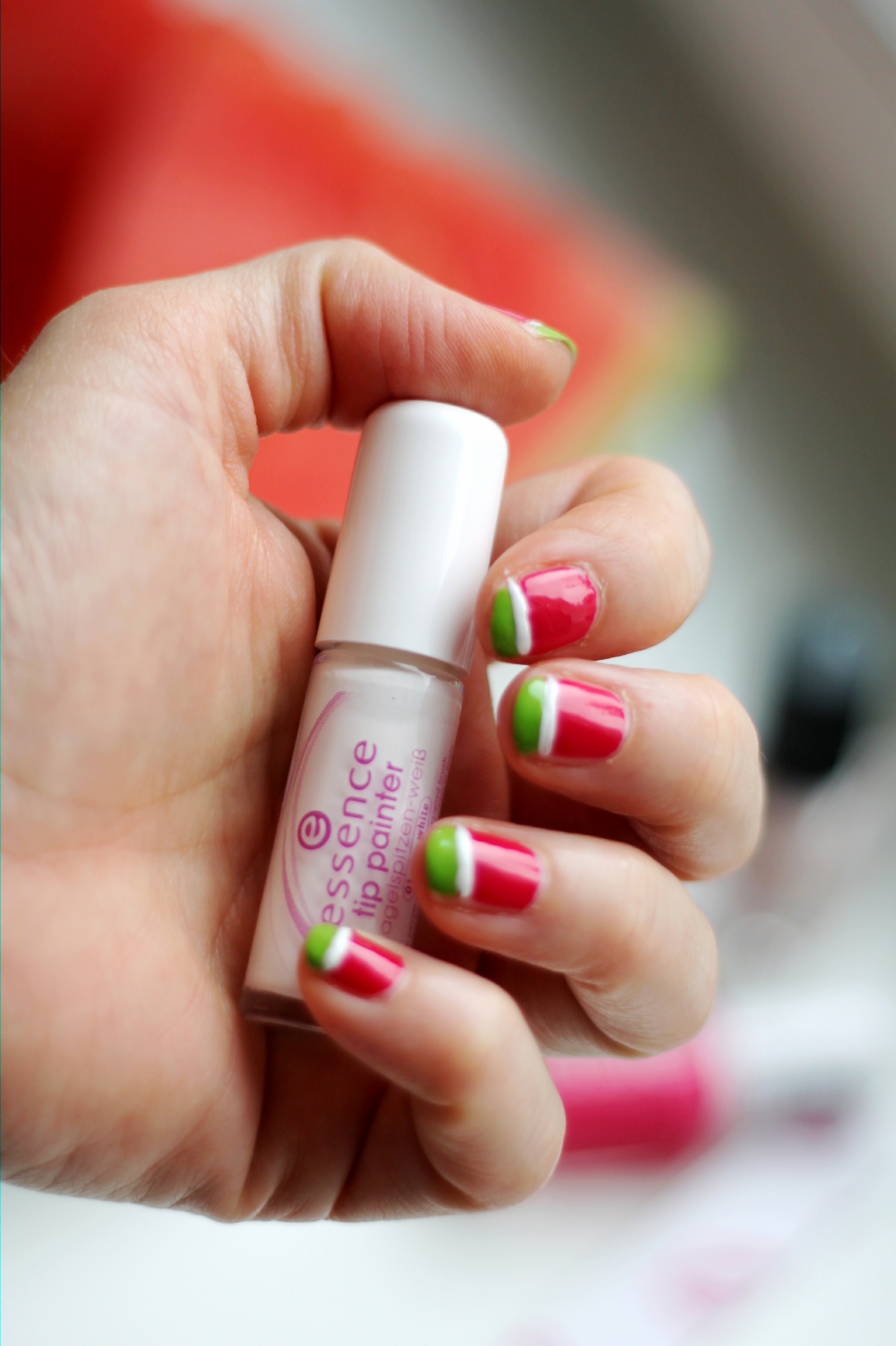 Melon definitely is one of my favorite fruits. I love the taste and also the smell of it and there always comes up a real summer feeling in me. At the moment you can’t melon only buy for eating but also in a big selection of clothing and accessories and so I thought why not melon on the nails and I‘ ve tried myself and documented everything for you! For the first time it has become quite good, but it certainly can be improved. I hope you like my melon tropic sunday nails.
