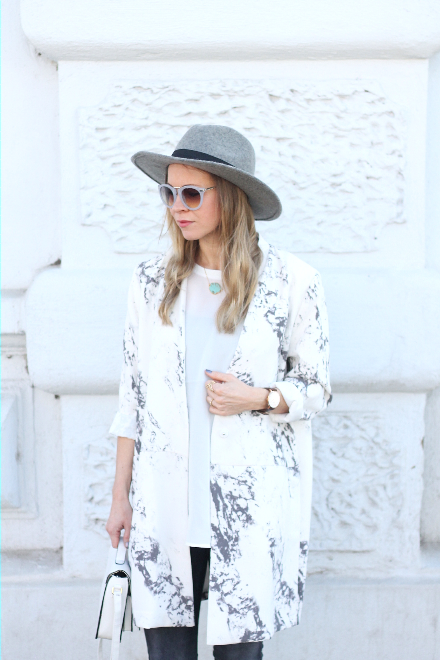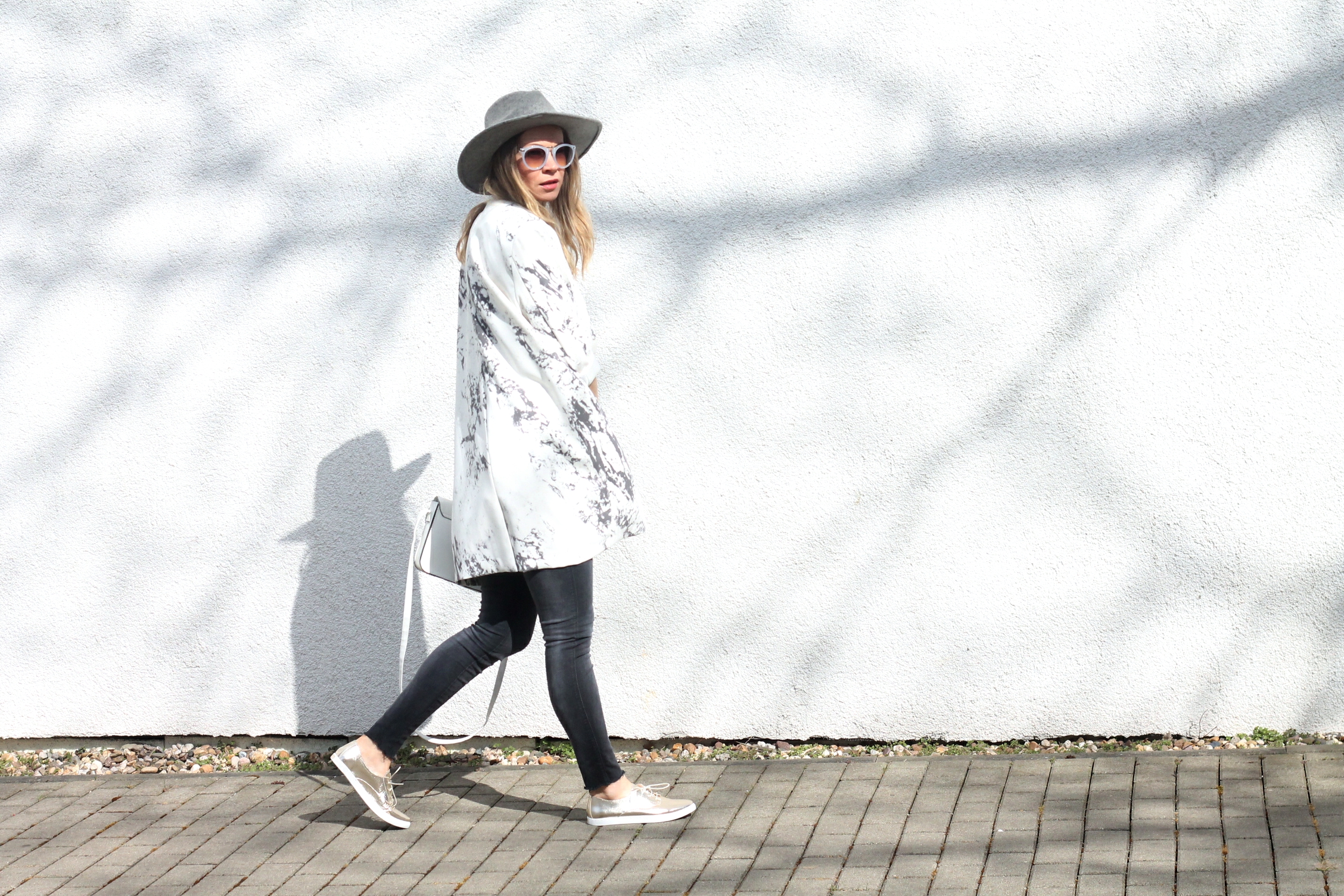 This marble long jacket I wore yesterday on that sunny Sunday and my golden shoes were shining in the sunlight. I hope you like the look. Wishing you all a happy start of the week. XX Ina