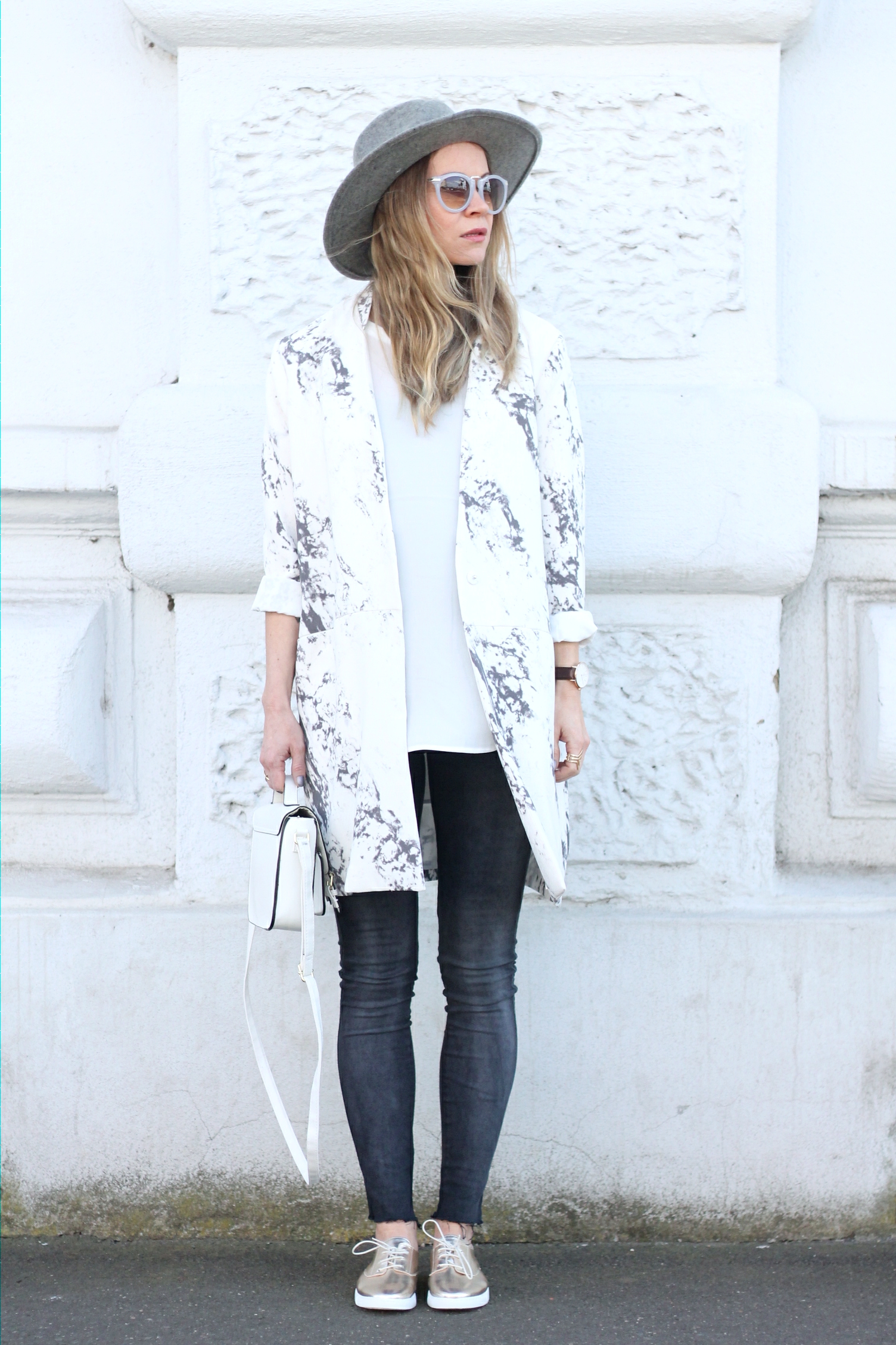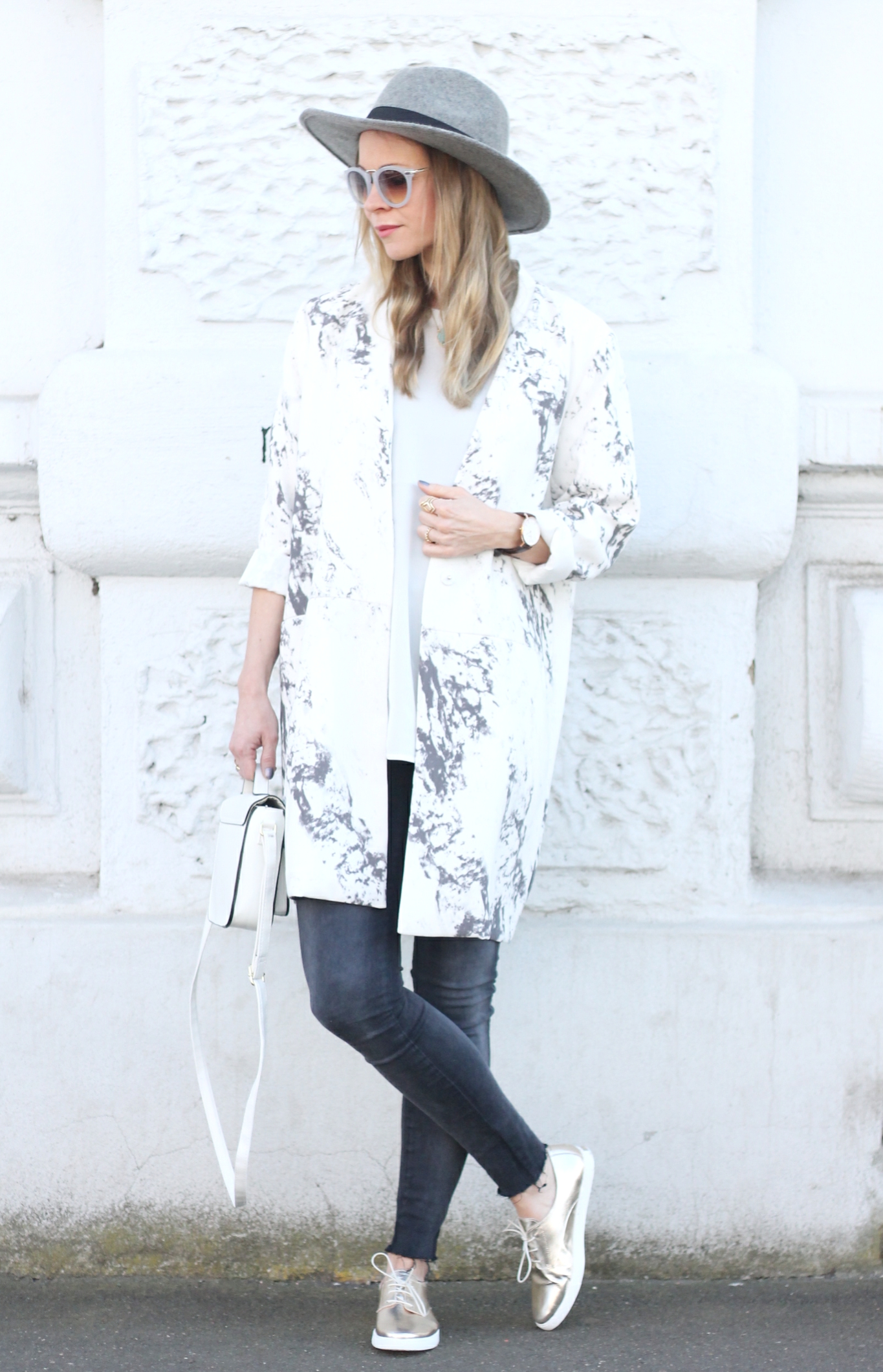 Diesen Longblazer im Mamorlook trug gestern an diesem wunderschönen sonnigen Sonntag und meine goldenen Schuhe glänzten im Sonnenlicht. Ich hoffe Euch gefällt der Look! Habt einen fröhlichen Wochenstart. XX Ina