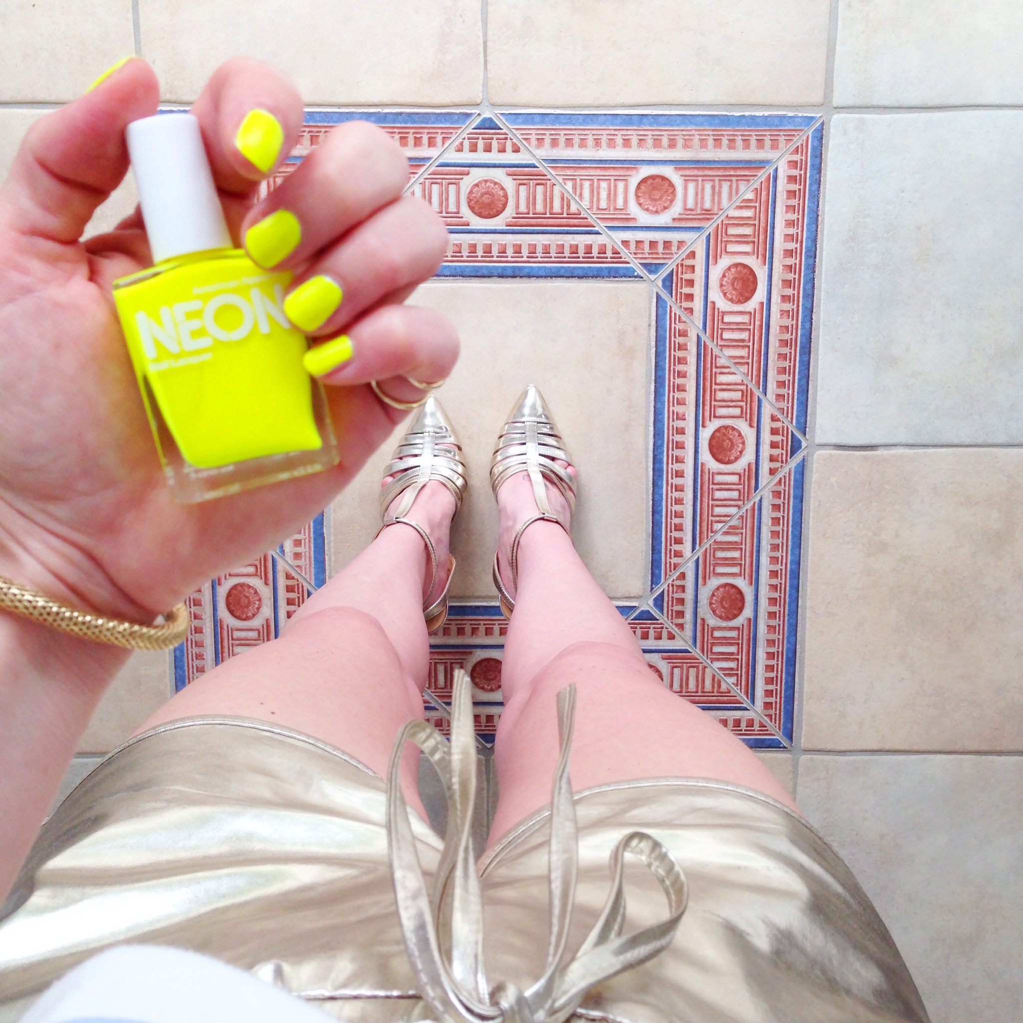 Sunday nails with essie nailpolish ‚go ginza‘ and fruits stickers by ‚fing’rs‘. The necklace I bought at ‚Tally Weijl‘.