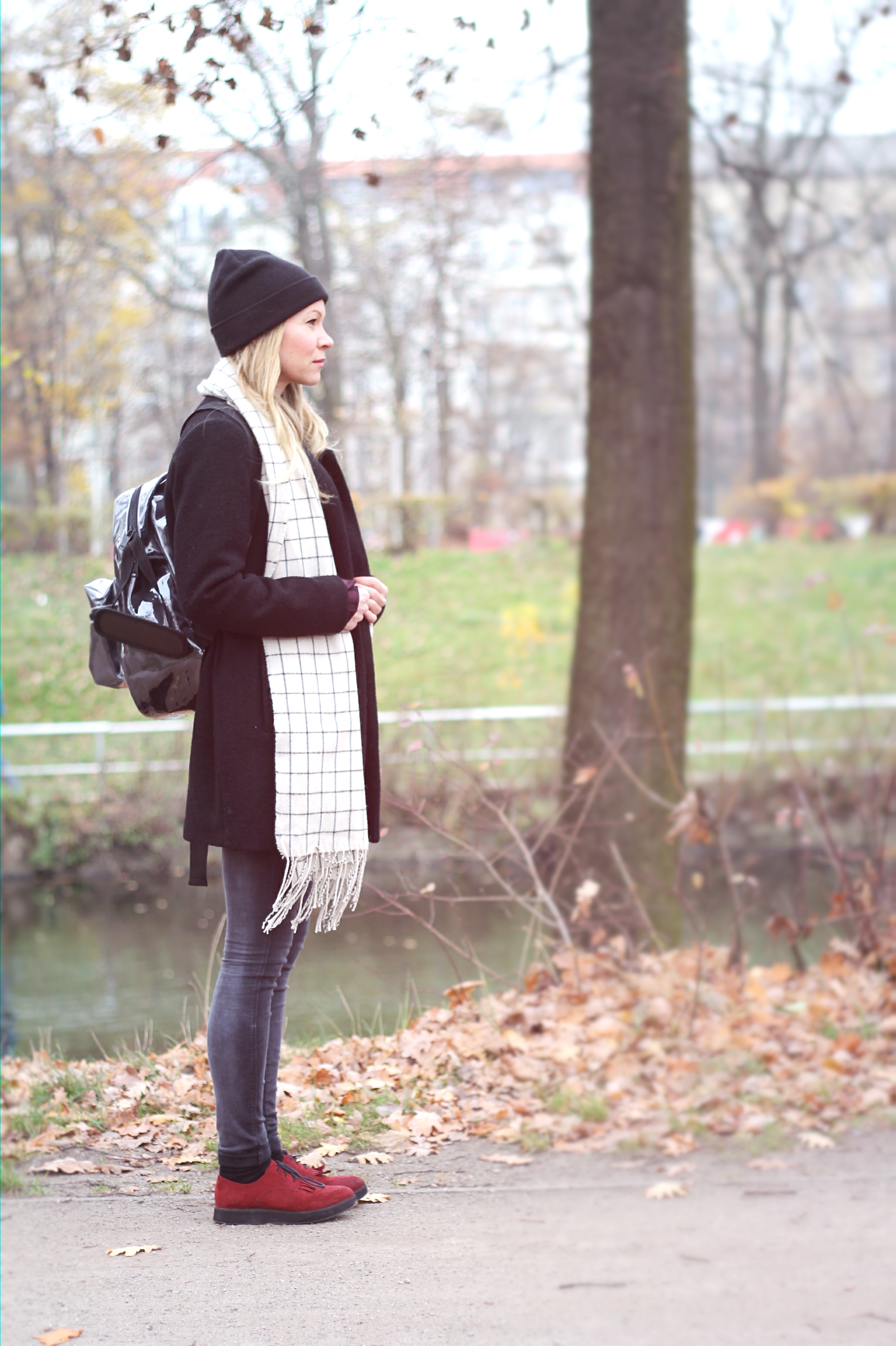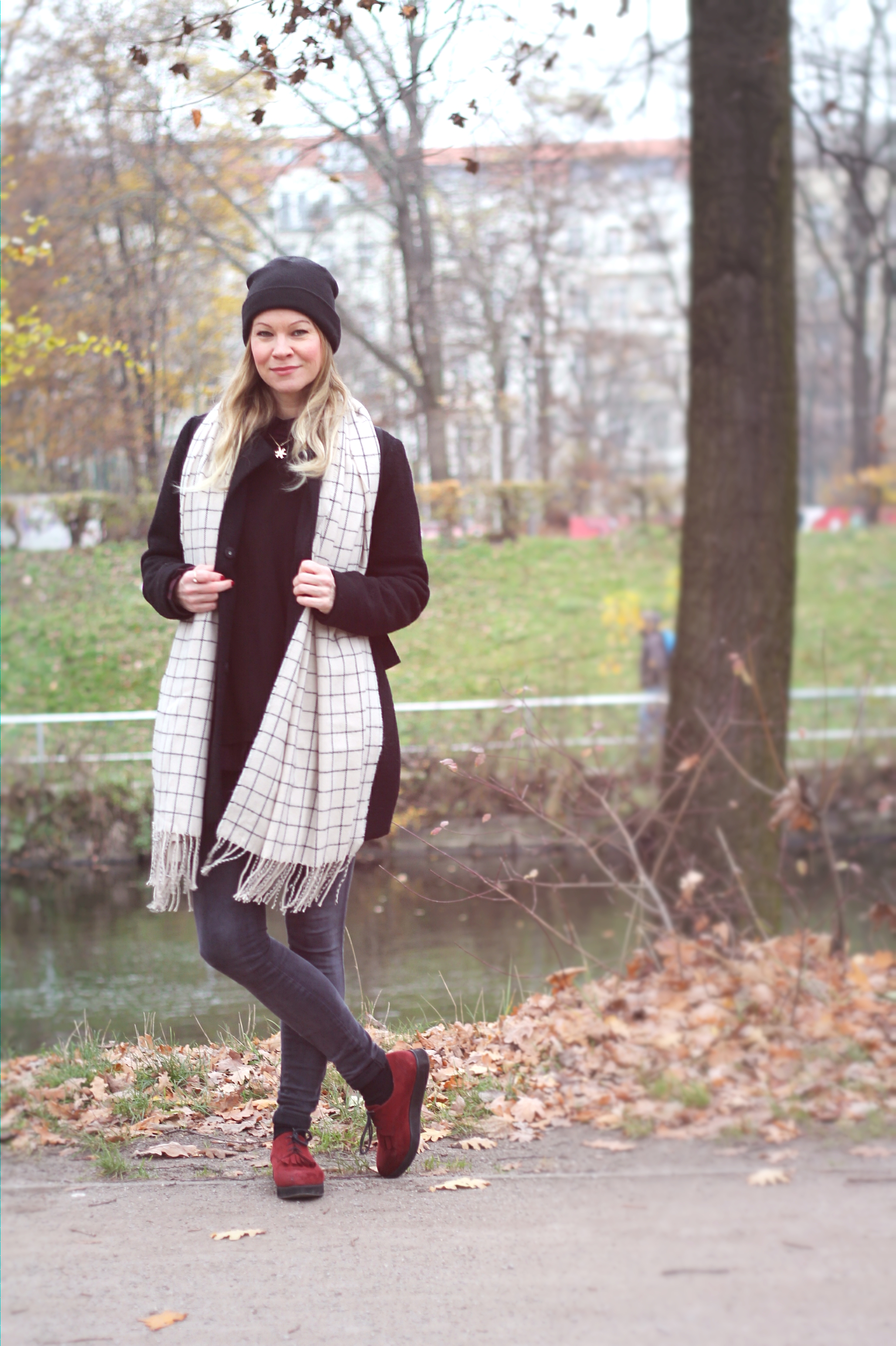 In winter time what I like the most is the cozy atmosphere when it’s cold outside and you’re sitting at home curled up in a blanket and a hot cup of tea in the hands. Already by 5 clock pm it’s getting dark and the whole city shines in the glow of Christmas lights. I like the smells from Christmas markets of mulled wine, roasted almonds and other treats. Unfortunately the early nightfall and the cloudy weather in the winter months are not the best requirements for outfit photos. I still hope that you like my outfit pics today. XX Ina