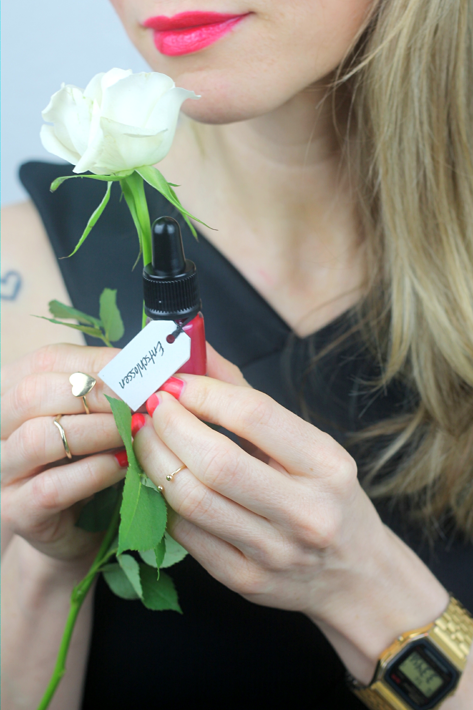In one week it‘ s Valentine’s Day again. On this day most of us will probably kiss a lot and for being prepared very well, today I want to show you the Lush Valentine’s Day collection ‚The Kiss‘: A lip scrub and a lip gloss. After this care your lips are perfectly prepared for the lipstick. I have decided myself for the Lush lipstick in the color ‚Entschlossen‘, a beautiful and kissproof raspberry red …