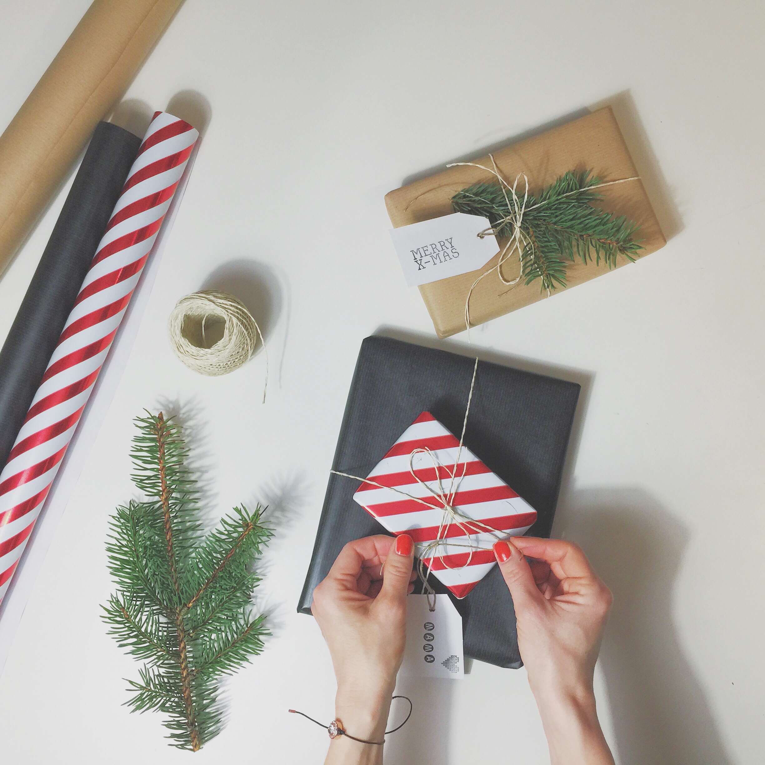 wrapping some last Christmas gifts.