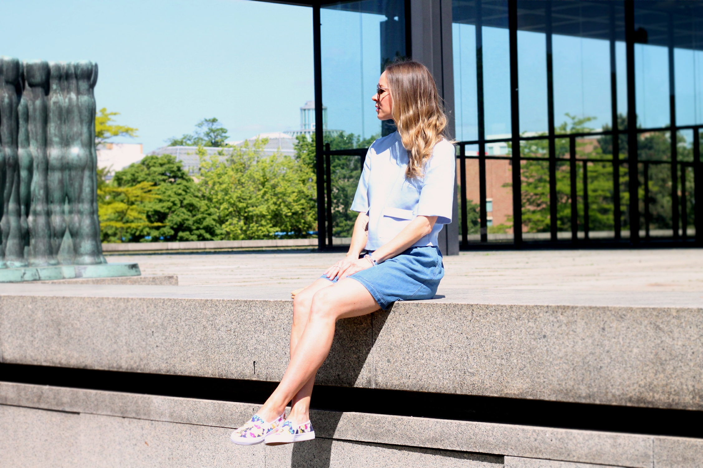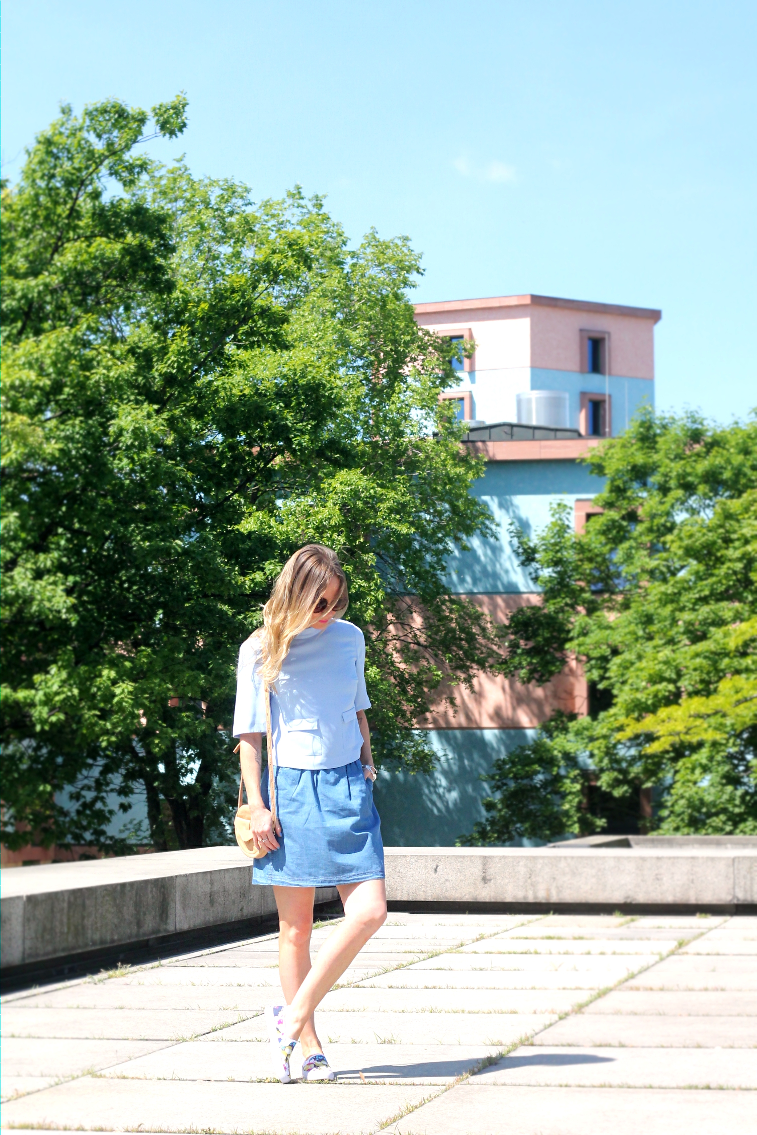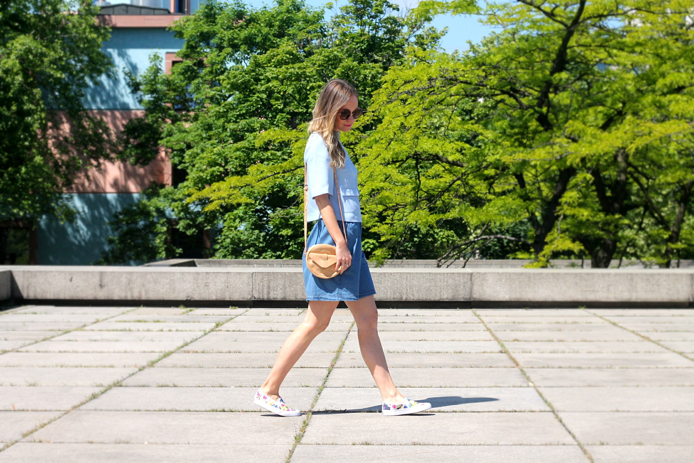 Dieses Outfit wir definitiv einer meiner Lieblingsoutfits für diese Saison. Ich liebe die hellblaue Farbe des Tops in Kombination mit dem leichten Jeansrock und schließlich der Blickfang: die blumenbedruckten Sneakers. Ich hoffe Euch gefällt der Look und wünsche Euch eine schöne Woche. XX Ina