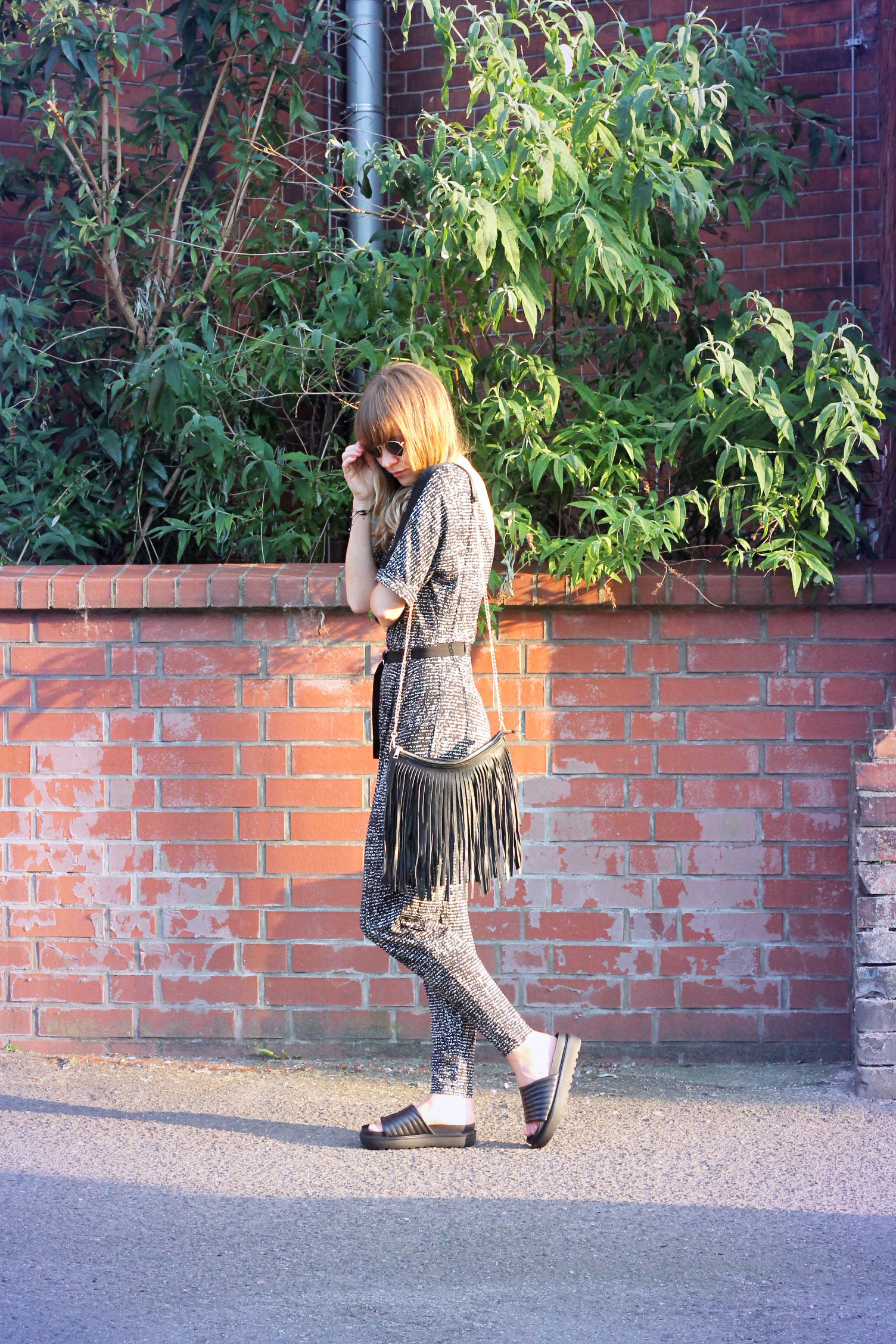 Jumpsuits- whether if short or long, are currently a favorite fashion piece. Super comfortable and in no time at all you are perfectly dressed. This pretty jumpsuit with monochrome patterns and waist belt, impresses with its beautiful style and the elegant cut back. Supported by the lovely Vagabond platform sandals with integrated footbed for endless walks on hot summer days. I hope you like the look! XX Ina