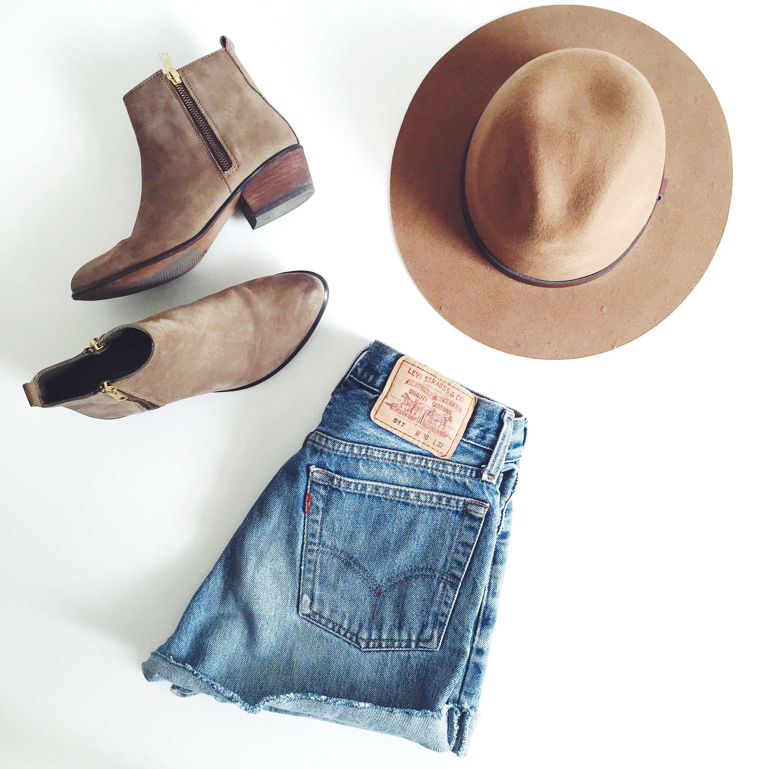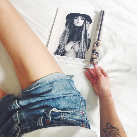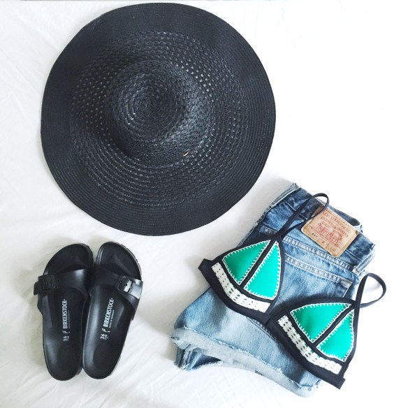 bikini by Triangl here, Levis jeans shorts, Birkenstock and hat by Oasis here