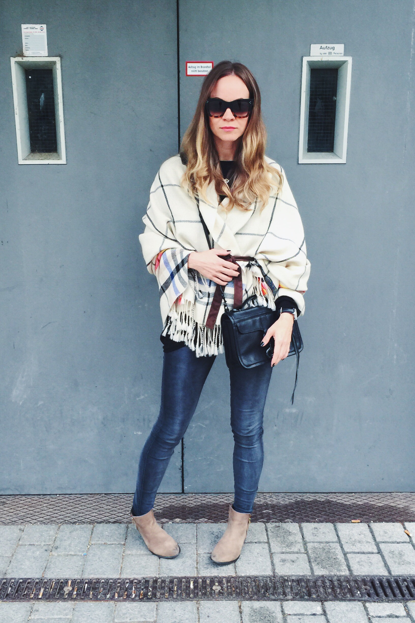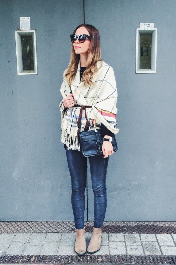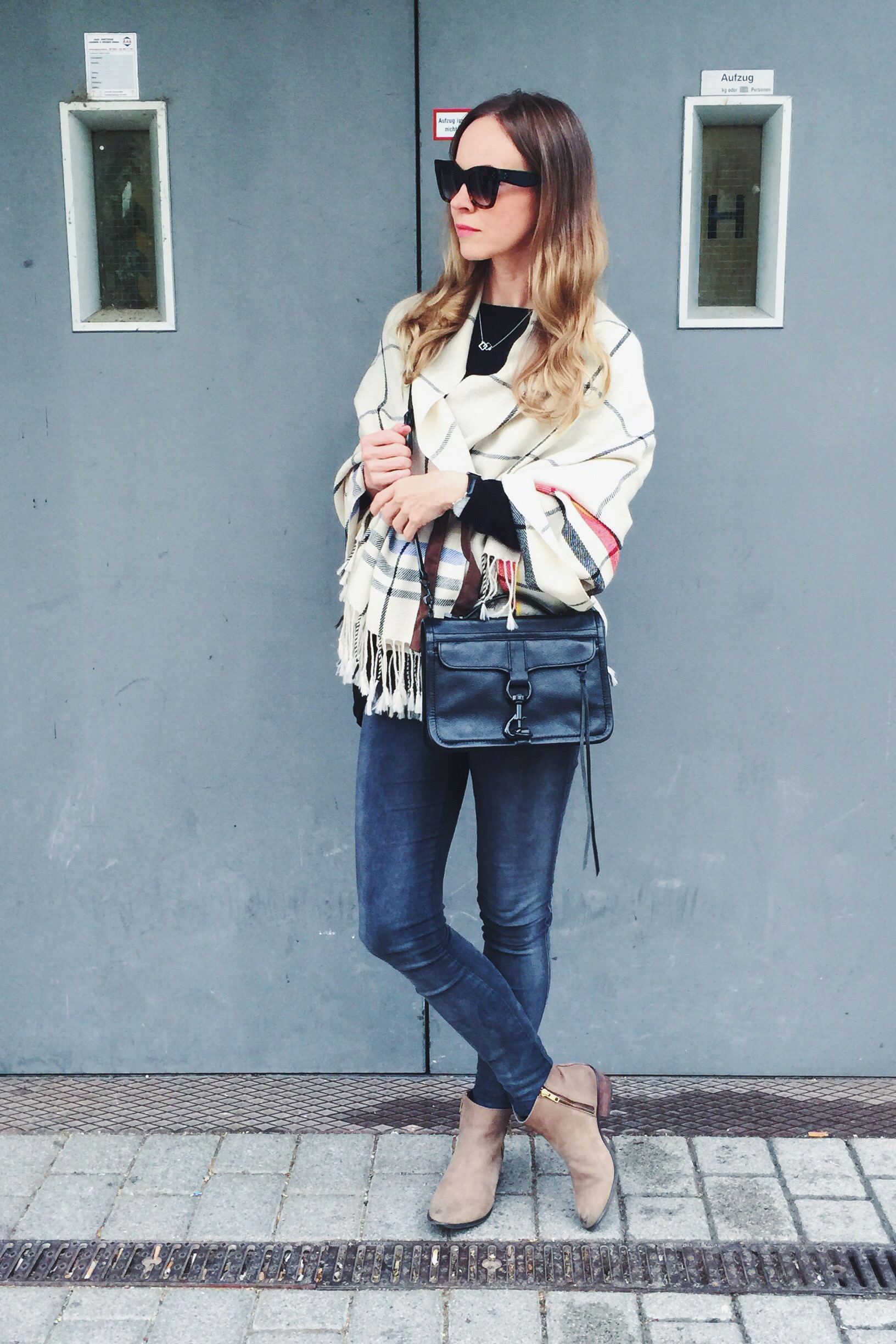 Hello loves. Today I felt like sharing some fall outfit inspiration by ‚Esprit‘ with you. I have always had a weakness for ponchos. There are so many reasons to love them! They are simple yet elegant, cozy and comfy and can be worn with pretty much anything. But most importantly I associate ponchos with fall. One of the best thing you can do is to add a hat to a poncho or cape. Last year it was already the main autumn and winter trend and this fall season I think I will wear this beautiful headdress as well one or another time. Jeans that fit pretty good are half the battle for a cool look. No matter if high waist jeans, boyfriend ones, skinny, mommy or bootcut ones – jeans always make a basis or a basement for your look. Todays basement is a simple bootcut jeans. If you’re making room in your wardrobe for a new bag this fall season—make it a bucket bag. A trend that has proven over the last few seasons that it has staying power. In the leather fashion bootie I especially like the simple form, the tip cap and the feminine heel. Last but not least this time I added some silver accessories. At the moment I like to wear silver jewels more often than the golden. What’s your favorite fall piece? Have a lovely day!
