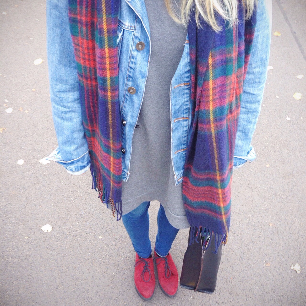 jeans jacket, sweater // New Yorker