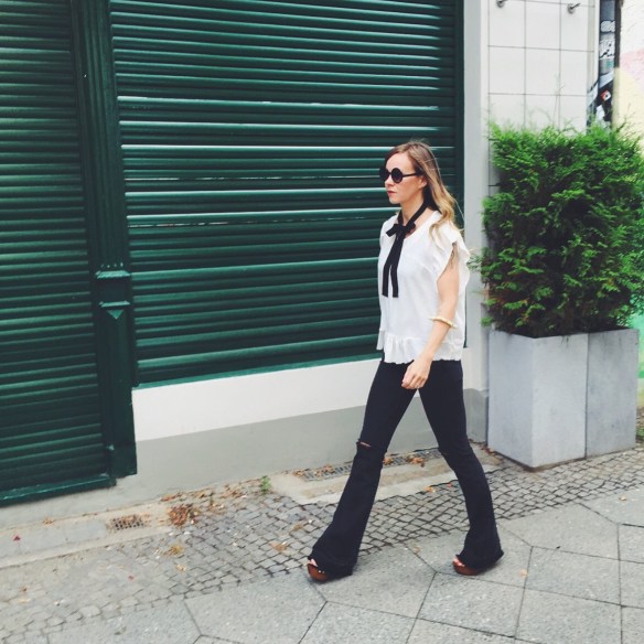Today I create an all-white look for you with this beautiful sustainable and green produced sweater by Jan’n June. Check out the beautiful handmade work by two girls from Hamburg here. I teamed it up with a jogging pants and some wedges and my favorite little bag from ‚Radley‘. I hope you like the way how I styled this all-white look. Feel inspired but beware: You might want to hold your morning coffee at a distance. xx Ina