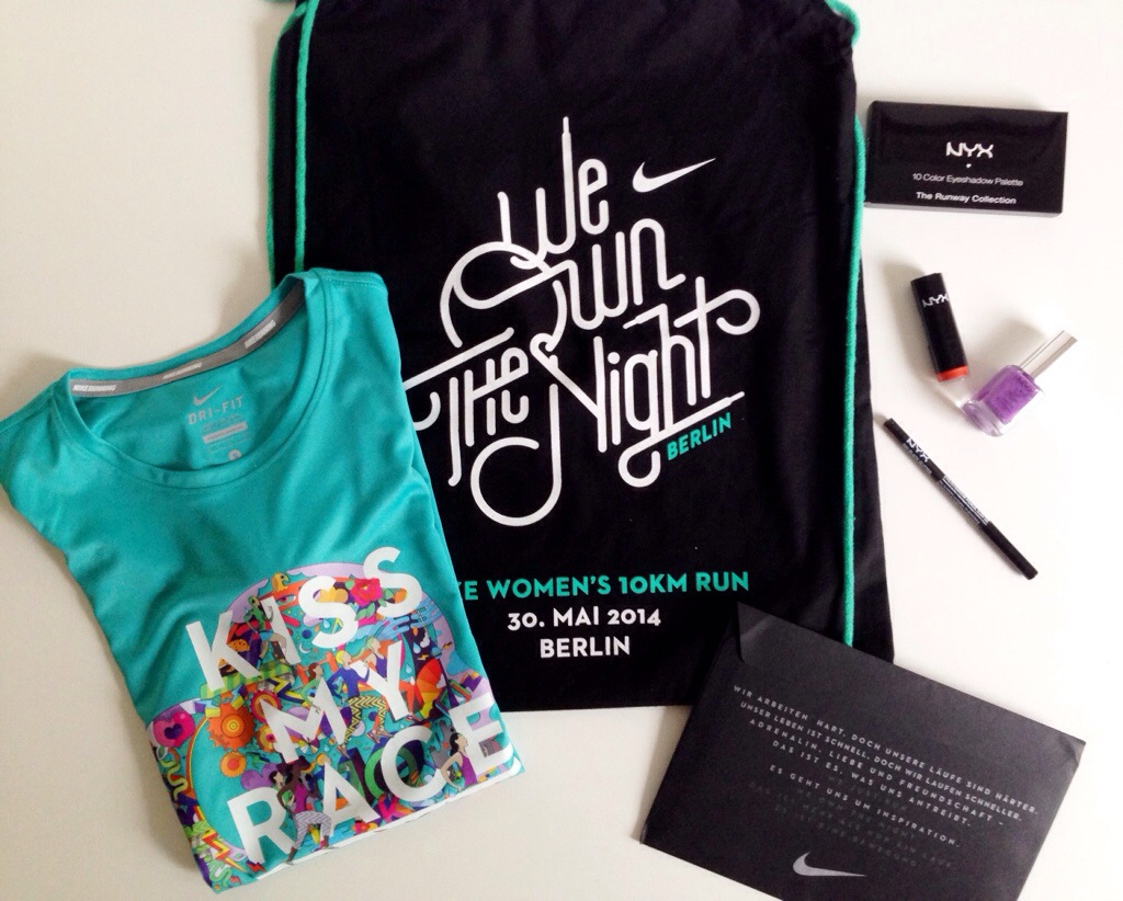 Hallo zusammen! Heute berichte ich über mein Highlight der letzten Woche. Am Freitag fand der ‚We own the night‘ Frauenlauf von Nike statt. Pünktlich um 21 Uhr gab es den Startschuss und ca. 6000 Girls liefen 10 km durch Berlin. Es war so aufregend und abenteuerlich! Die Stimmung war bombastisch: Musik, jubelnde Zuschauer und ein riesiges blaues Meer, soweit das Auge reichte. Diese Bilder hätte ich gern aus der Luft verfolgt. Schon nach 51 Minuten überquerte ich die Ziellinie und war sehr zufrieden mit meinem Ergebnis. Wie immer beschäftigte mich die Frage: Was ziehe ich an? Da das Wetter in der letzten Woche sehr wechselhaft und verregnet war, entschied ich mich für einen Windrunner und eine lange Laufhose von Nike. Jede Teinehmerin bekam im Ziel nach den 10 Kilometern eine wunderhübsche Kette von der Berliner Schmuckdesignerin Sabrina Dehoff und Nike überreicht. Voller Stolz trage ich diese Kette und werde mich immer an diesen Nachtlauf zurückerinnern. Weiter unten zeige ich Euch das Schmuckstück, wie schön es in der Sonne glänzt.